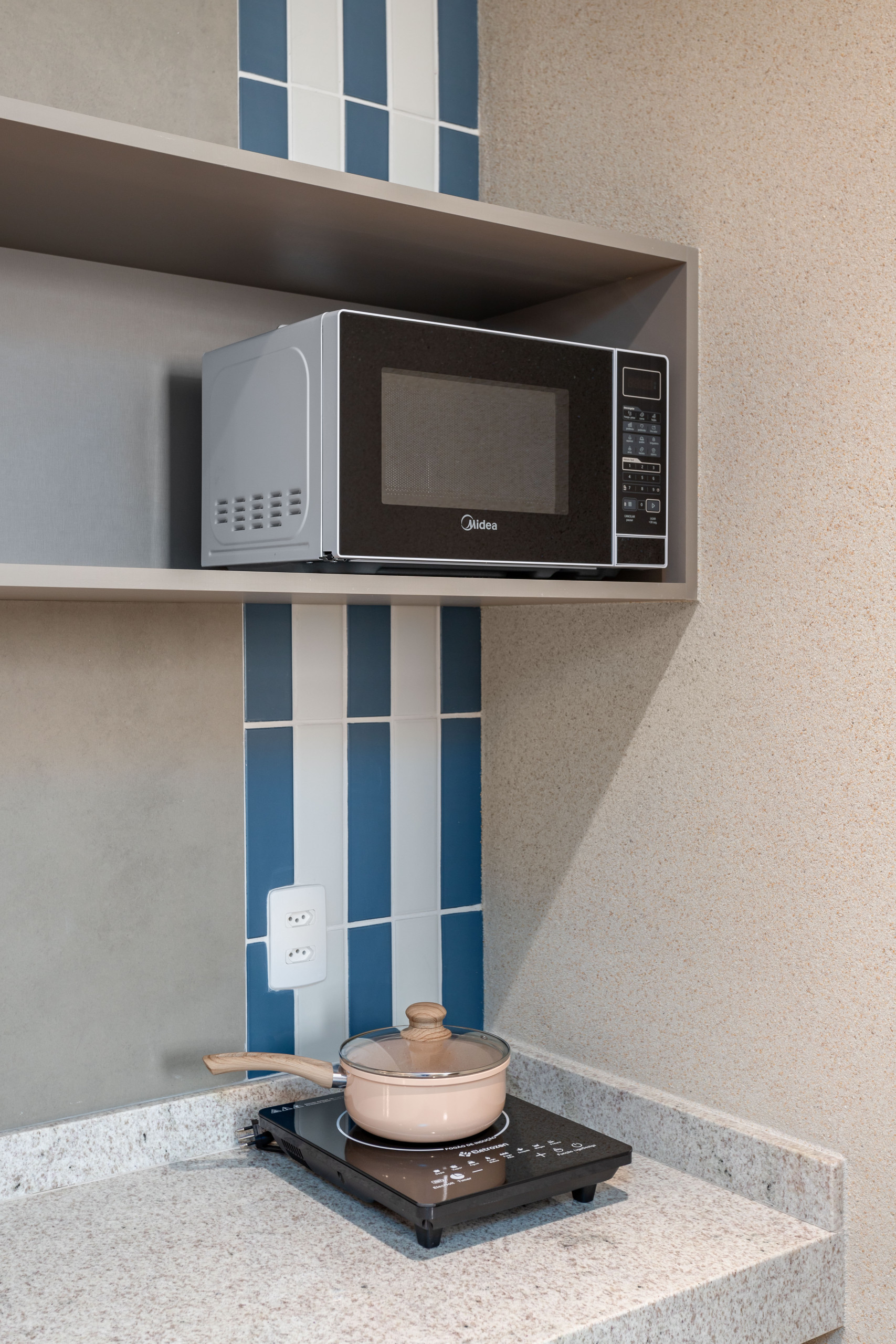 El espacio aún ofrece comodidades que van más allá de lo esperado, incluyendo un área de coworking, ideal para quienes necesitan conciliar ocio y trabajo, y un práctico mercadito inteligente, garantizando un acceso rápido a artículos esenciales sin salir del condominio. Para su conveniencia, hay también un guardarropa de 1 volumen y un vestuario, con ducha y sanitario, ambos disponibles gratuitamente para los huéspedes, además de recepción 24 horas. Todo fue pensado para proporcionarle una estancia con el máximo de comodidad, practicidad y conveniencia.