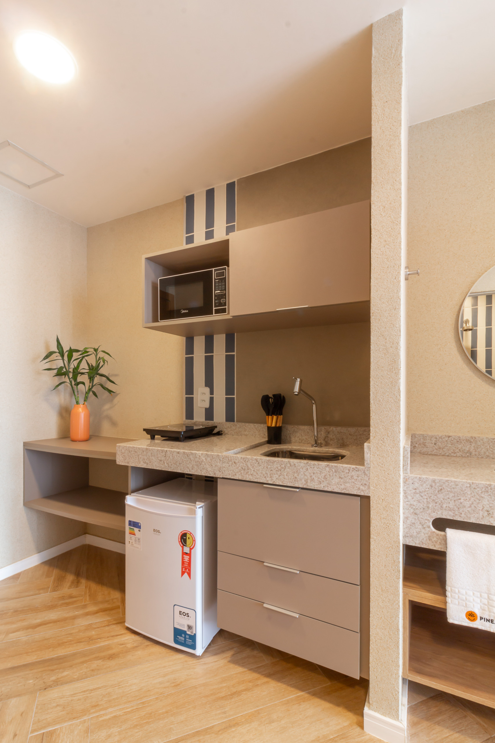 El espacio aún ofrece comodidades que van más allá de lo esperado, incluyendo un área de coworking, ideal para quienes necesitan conciliar ocio y trabajo, y un práctico mercadito inteligente, garantizando un acceso rápido a artículos esenciales sin salir del condominio. Para su conveniencia, hay también un guardarropa de 1 volumen y un vestuario, con ducha y sanitario, ambos disponibles gratuitamente para los huéspedes, además de recepción 24 horas. Todo fue pensado para proporcionarle una estancia con el máximo de comodidad, practicidad y conveniencia.