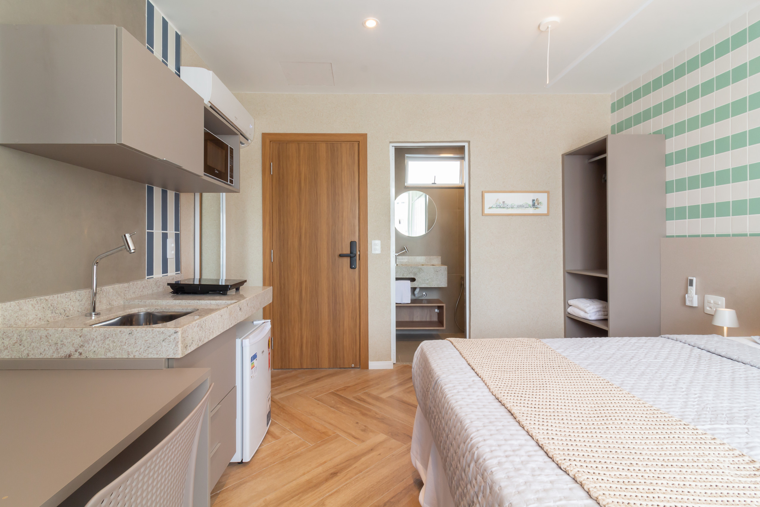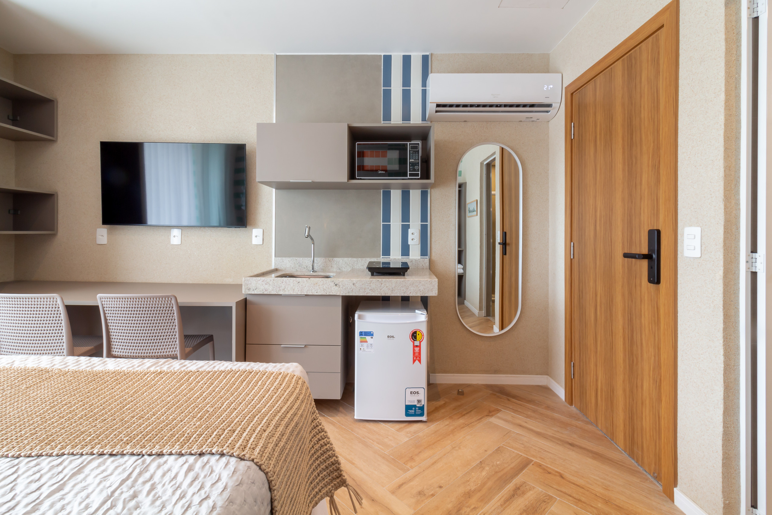 El espacio aún ofrece comodidades que van más allá de lo esperado, incluyendo un área de coworking, ideal para quienes necesitan conciliar ocio y trabajo, y un práctico mercadito inteligente, garantizando un acceso rápido a artículos esenciales sin salir del condominio. Para su conveniencia, hay también un guardarropa de 1 volumen y un vestuario, con ducha y sanitario, ambos disponibles gratuitamente para los huéspedes, además de recepción 24 horas. Todo fue pensado para proporcionarle una estancia con el máximo de comodidad, practicidad y conveniencia.