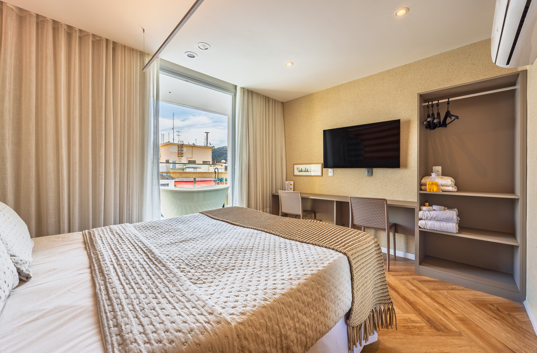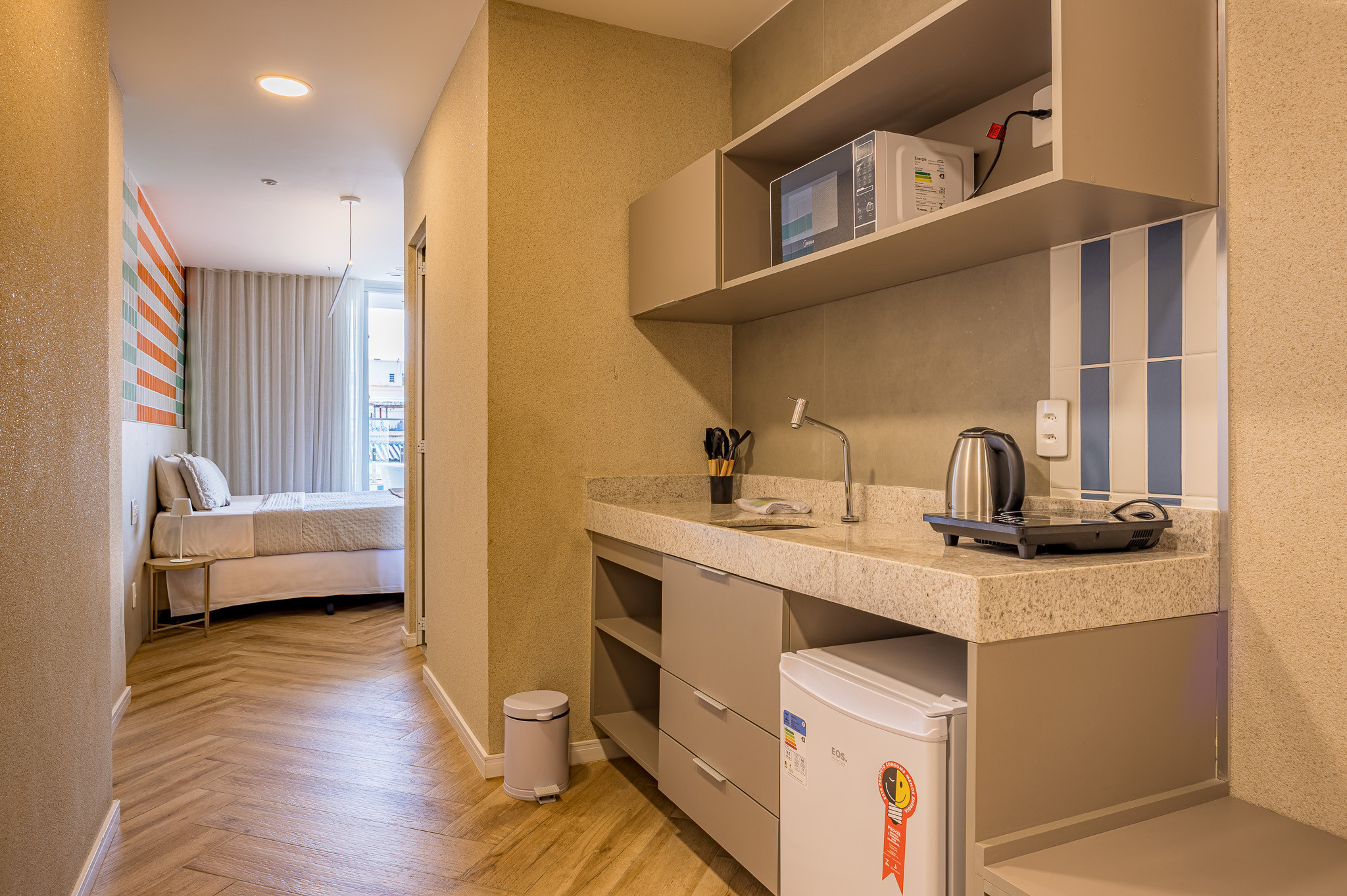 El espacio aún ofrece comodidades que van más allá de lo esperado, incluyendo un área de coworking, ideal para quienes necesitan conciliar ocio y trabajo, y un práctico mercadito inteligente, garantizando un acceso rápido a artículos esenciales sin salir del condominio. Para su conveniencia, hay también un guardarropa de 1 volumen y un vestuario, con ducha y sanitario, ambos disponibles gratuitamente para los huéspedes, además de recepción 24 horas. Todo fue pensado para proporcionarle una estancia con el máximo de comodidad, practicidad y conveniencia.