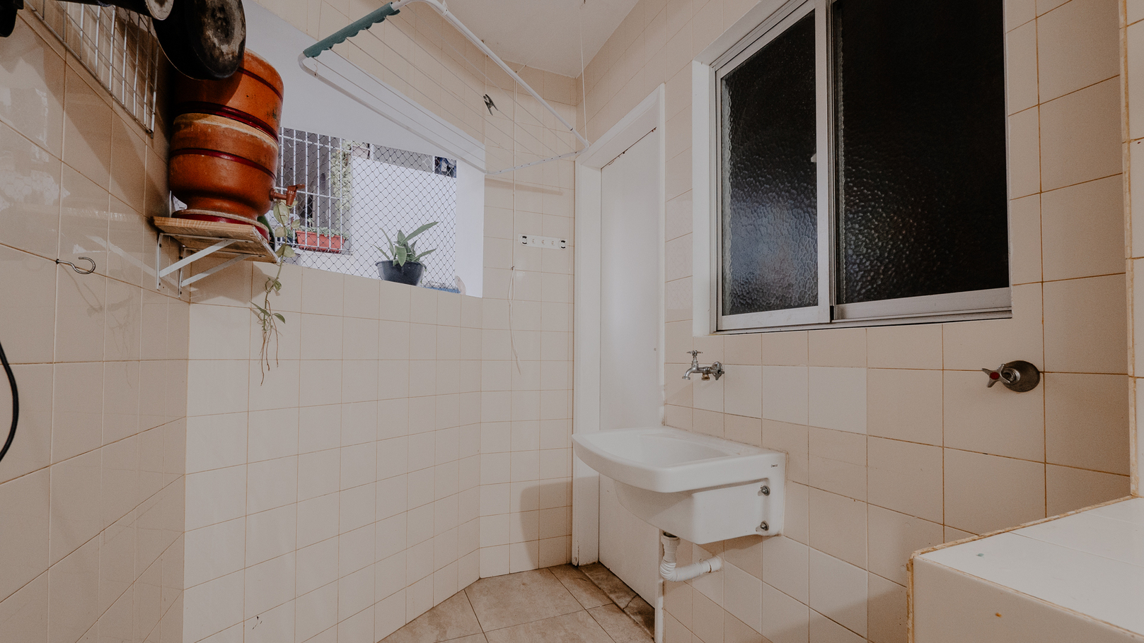 - Lavandería con lavadero y tendedero en el techo