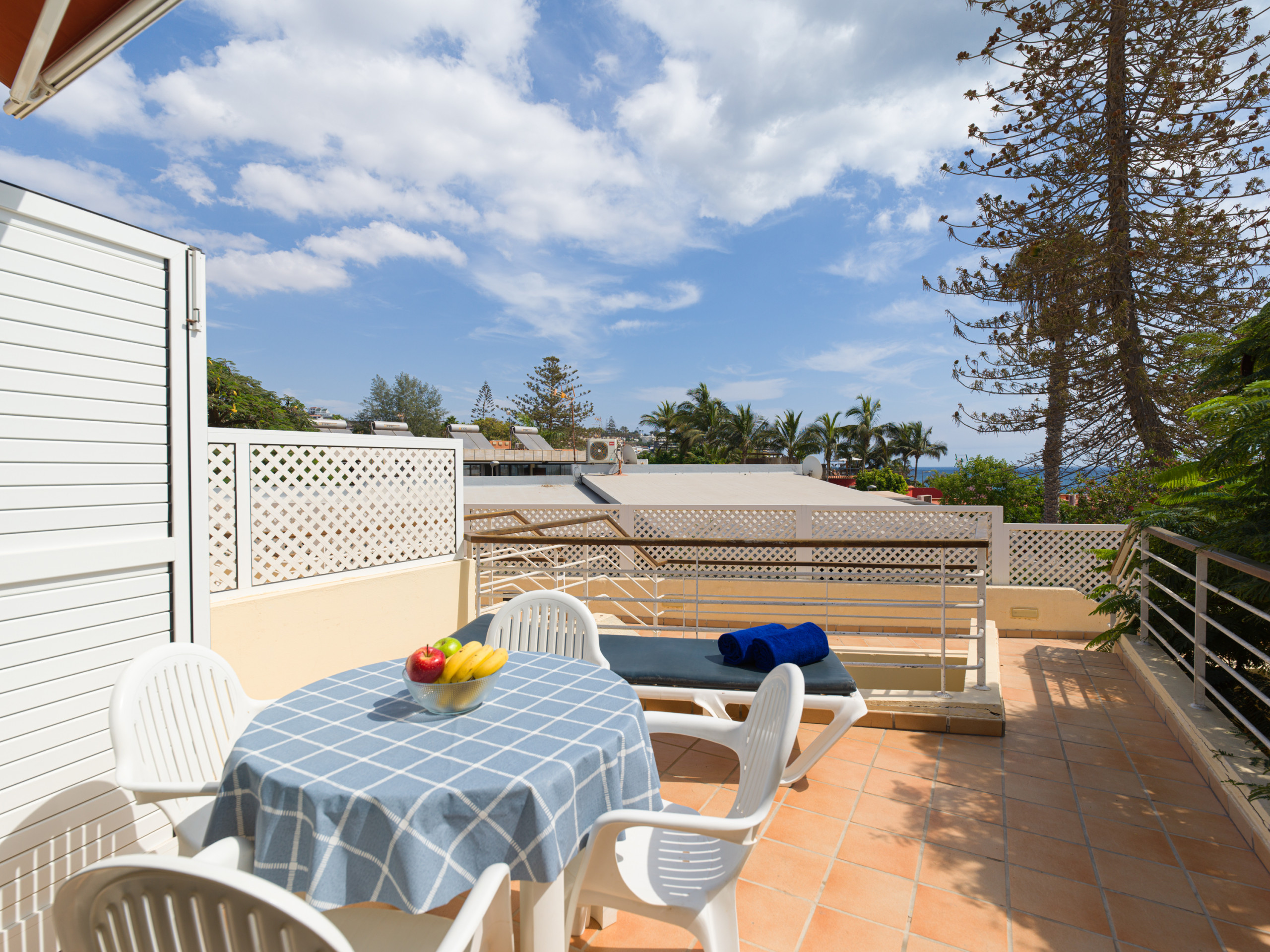 Entre los puntos a destacar está la terraza, debido a su ubicación recibe sol buena parte del día y cuenta con una tumbona y muebles exteriores de comedor para que pueda disfrutar sus comidas al aire libre con la agradable brisa y las vistas relajantes.