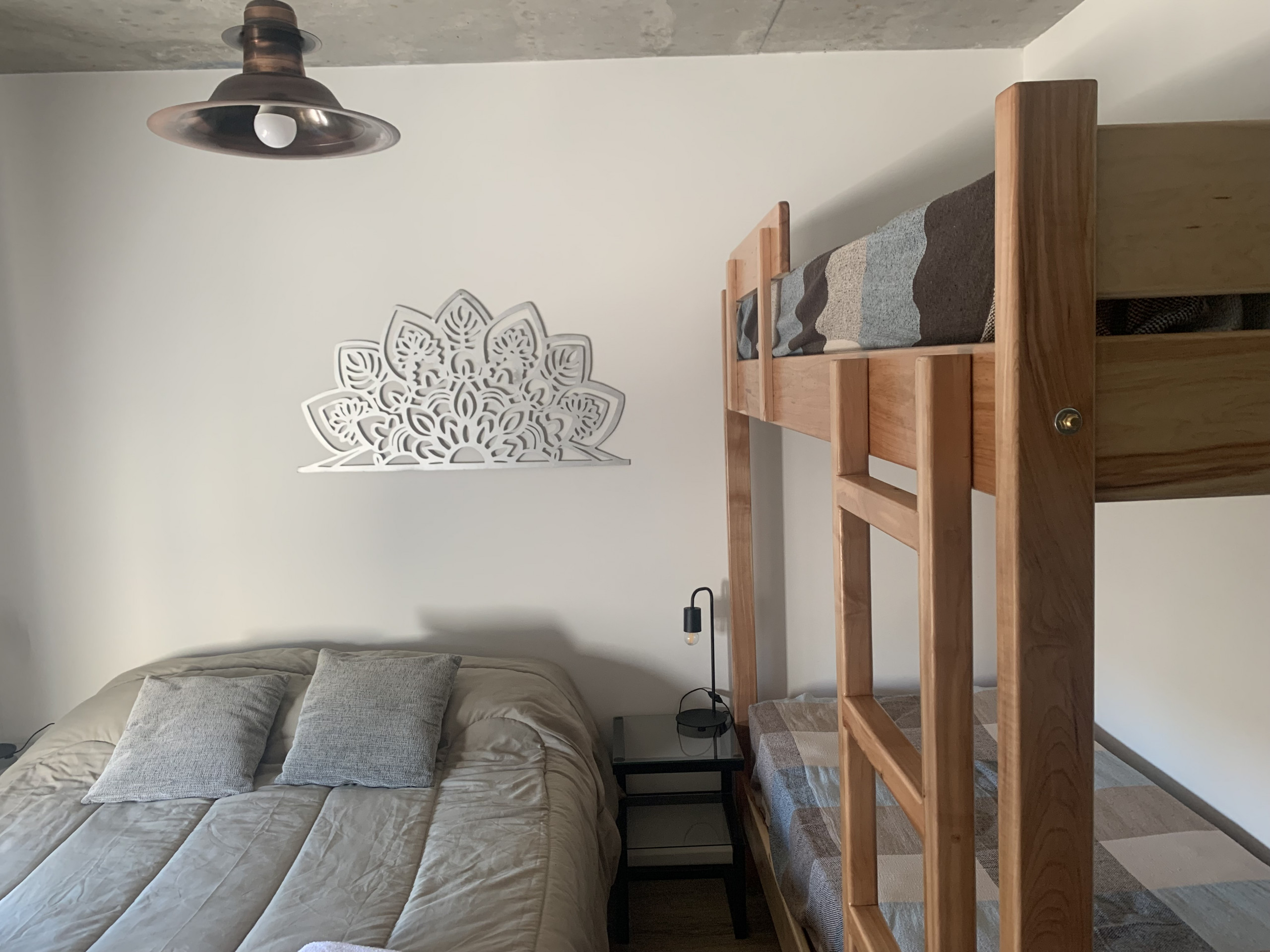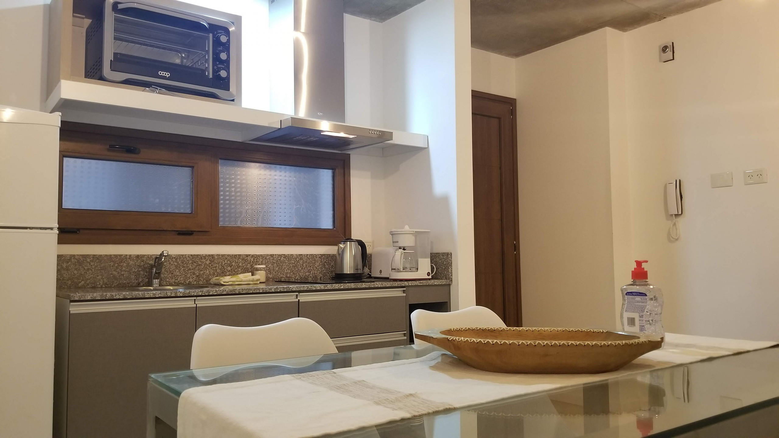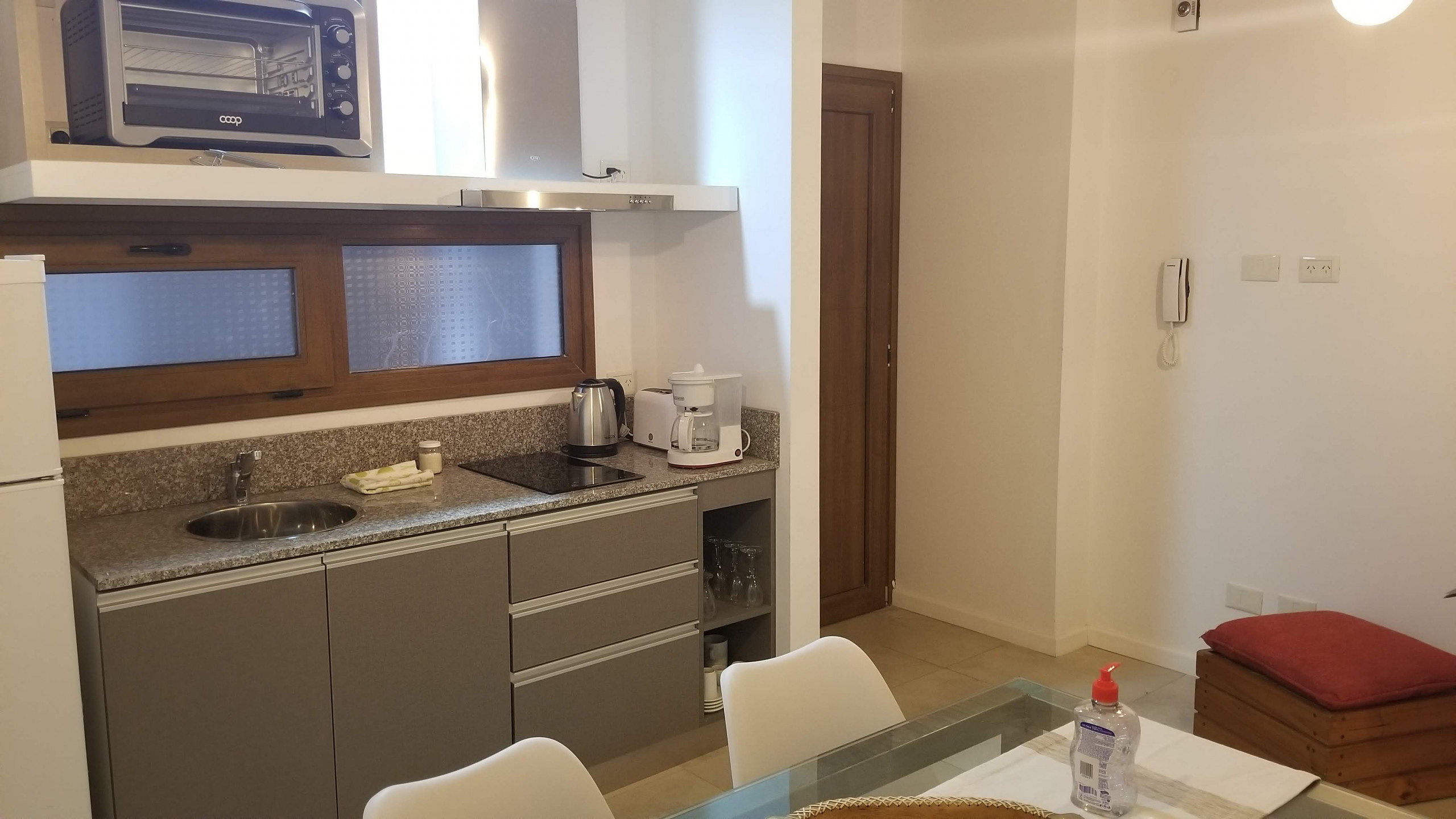 El departamento cuenta con 45 metros cuadrados distribuidos inteligentemente, ofreciendo un dormitorio con una cama doble y literas, ideal para acomodar hasta 4 personas. La cocina americana está completamente equipada con electrodomésticos modernos como heladera, lavadora, microondas, cafetera, tostadora y hervidor, permitiéndote preparar deliciosas comidas durante tu estadía.