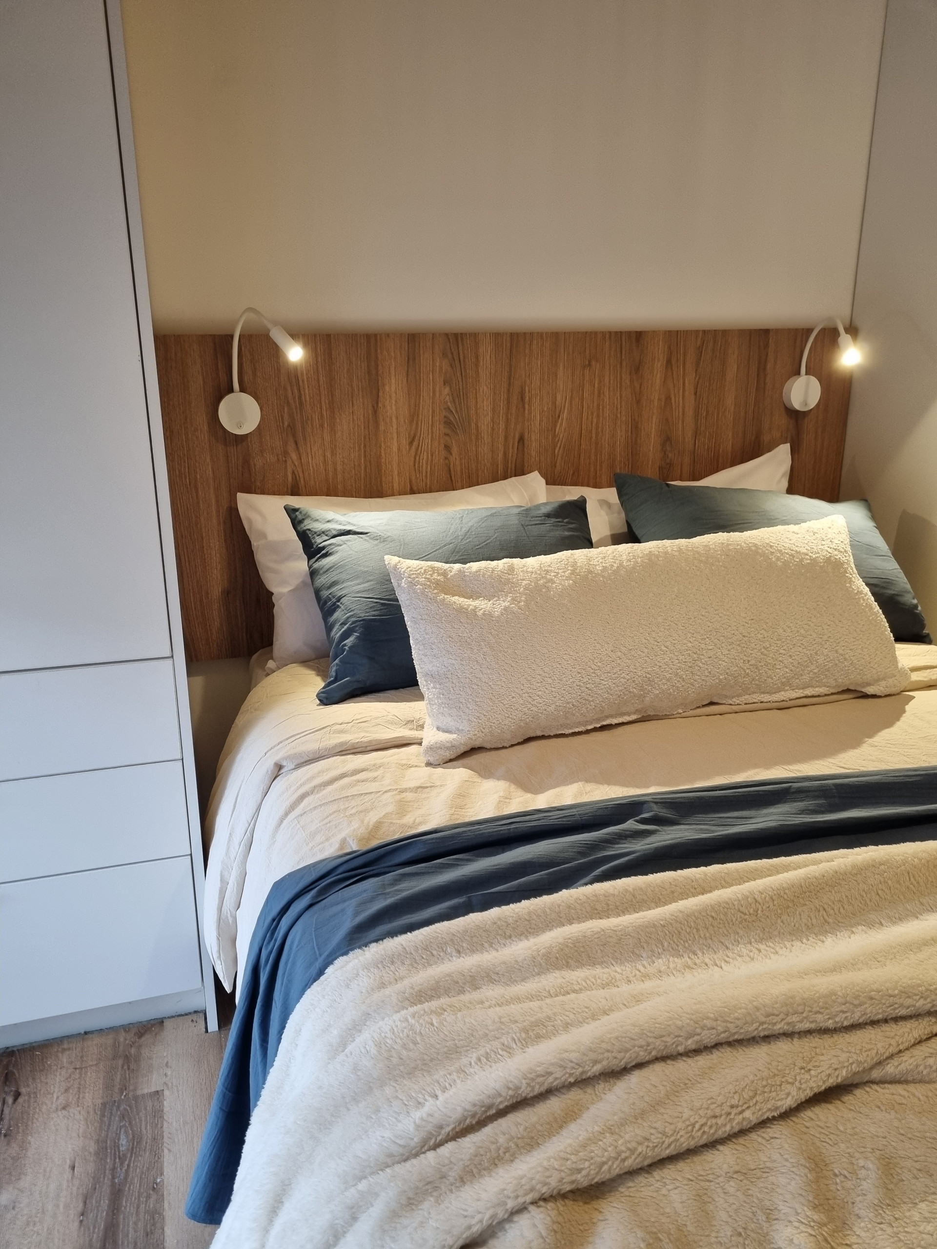 Este moderno alojamiento cuenta con dos dormitorios equipados con dos camas queen size y dos sofás cama, permitiendo alojar cómodamente hasta 6 personas. La distribución interior está diseñada para garantizar privacidad y confort durante tu estancia.