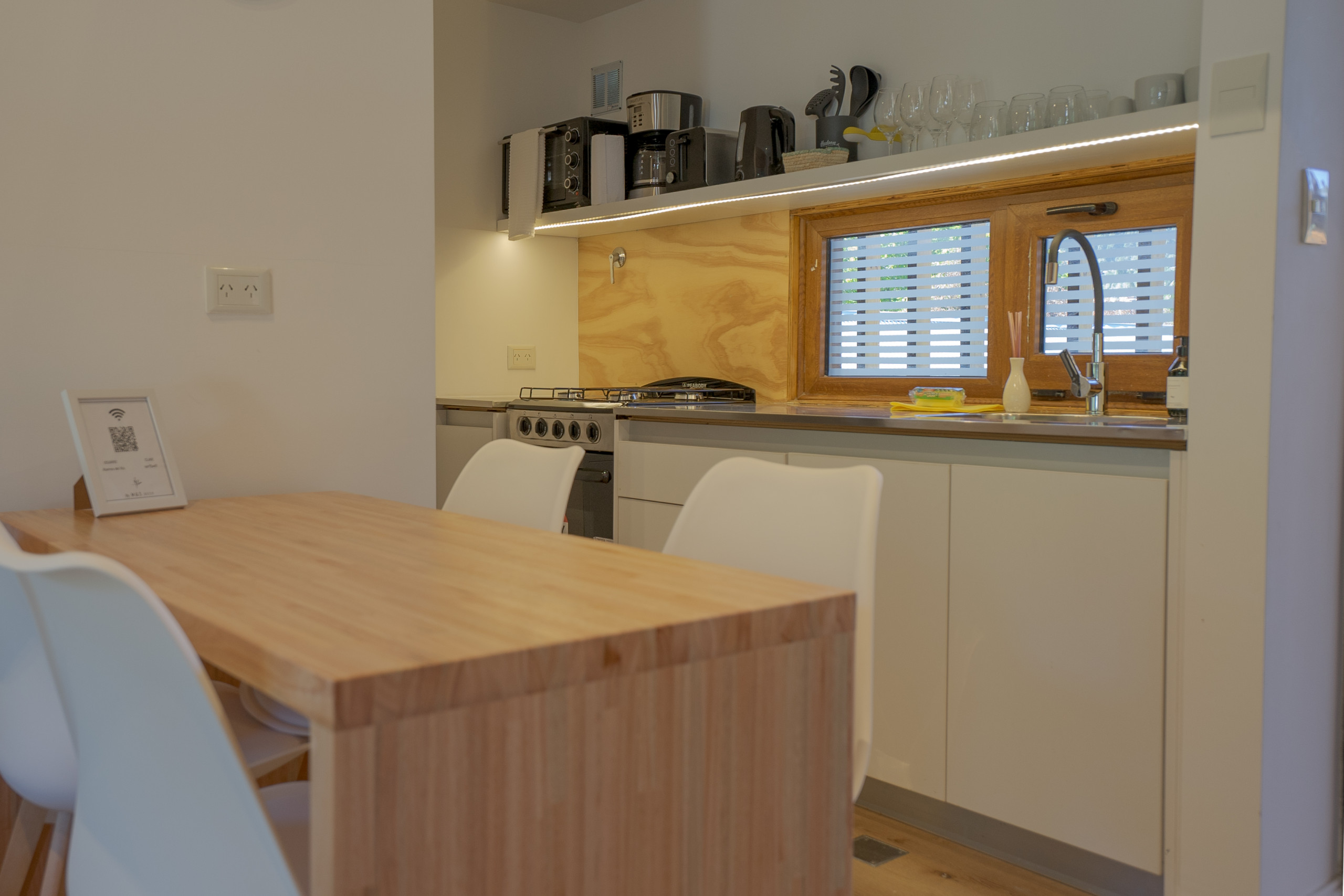 La cocina americana está totalmente equipada con electrodomésticos de primera: refrigerador, lavadora, secadora, máquina de café, microondas, tostadora, hervidor eléctrico y una completa dotación de utensilios de cocina. Ideal para preparar deliciosas comidas durante su estadía.