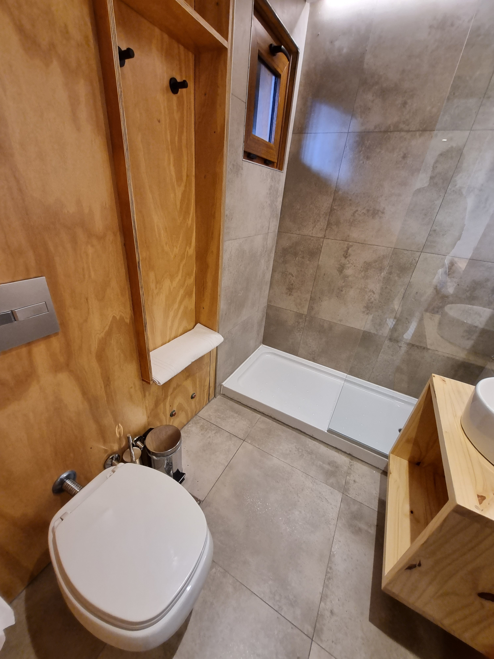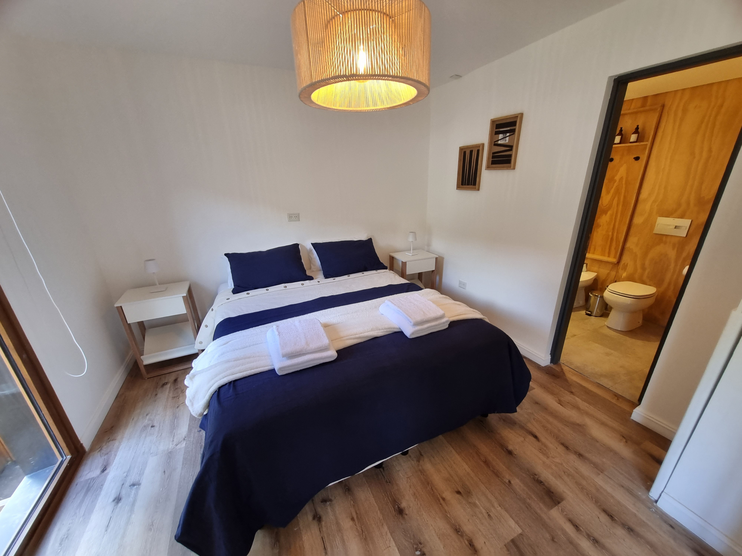 Este moderno alojamiento cuenta con una distribución práctica que incluye un dormitorio principal con dos camas queen size y un sofá cama adicional, permitiendo alojar cómodamente hasta 5 personas. La vivienda dispone de dos baños completos con ducha, ideal para garantizar la privacidad y comodidad de todos los huéspedes.