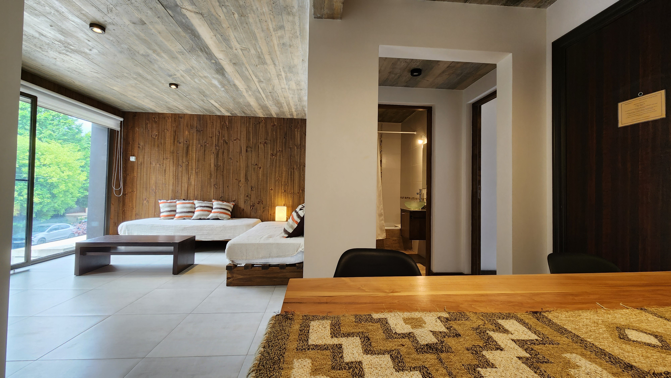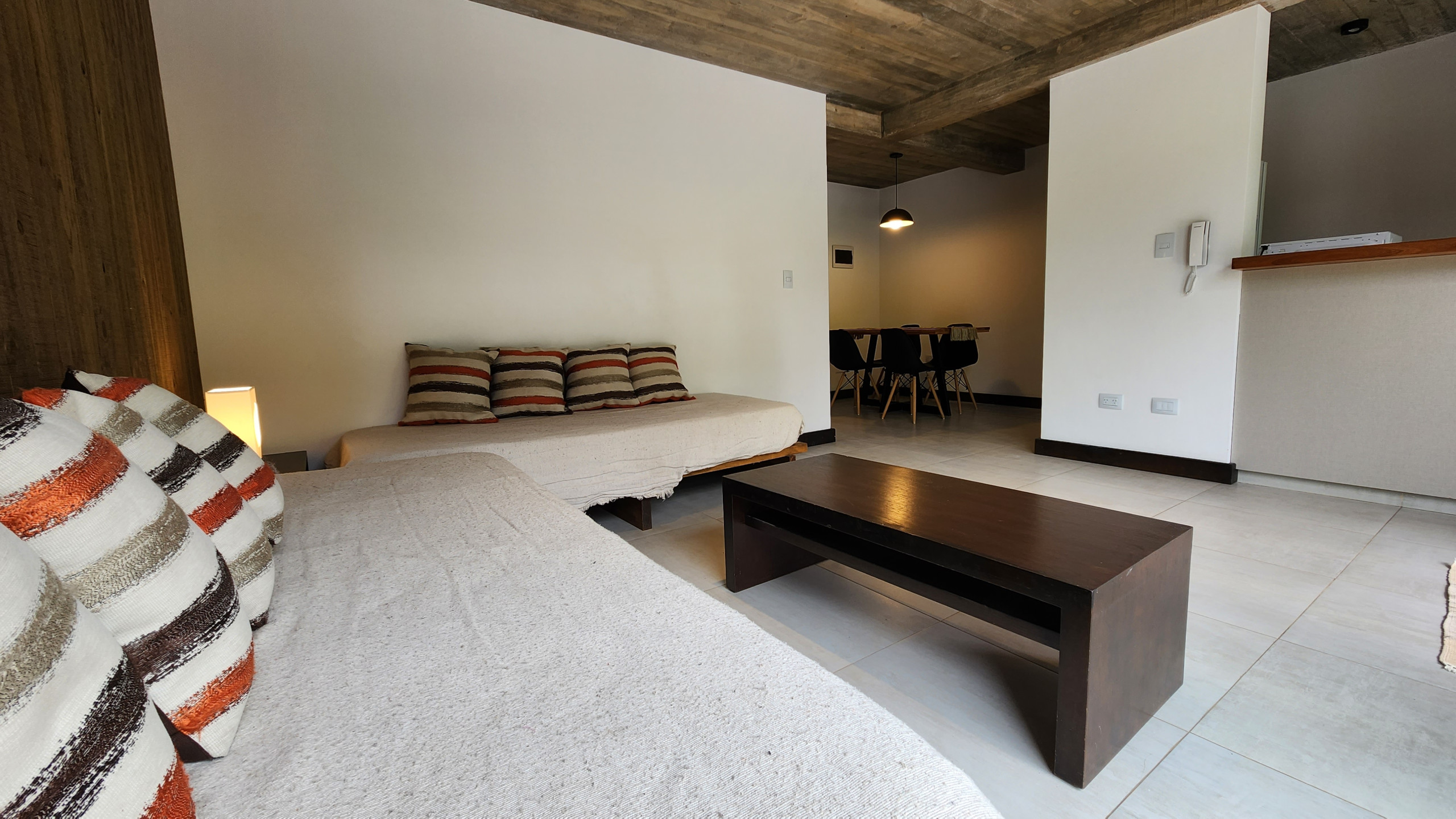 La construcción moderna con materiales nobles, como la madera y la piedra, añade un toque de elegancia y autenticidad al espacio, creando una atmósfera acogedora y lujosa. Con capacidad para cuatro personas, el dormitorio matrimonial proporciona intimidad, mientras que las dos camas individuales en el living aseguran flexibilidad para grupos o familias.