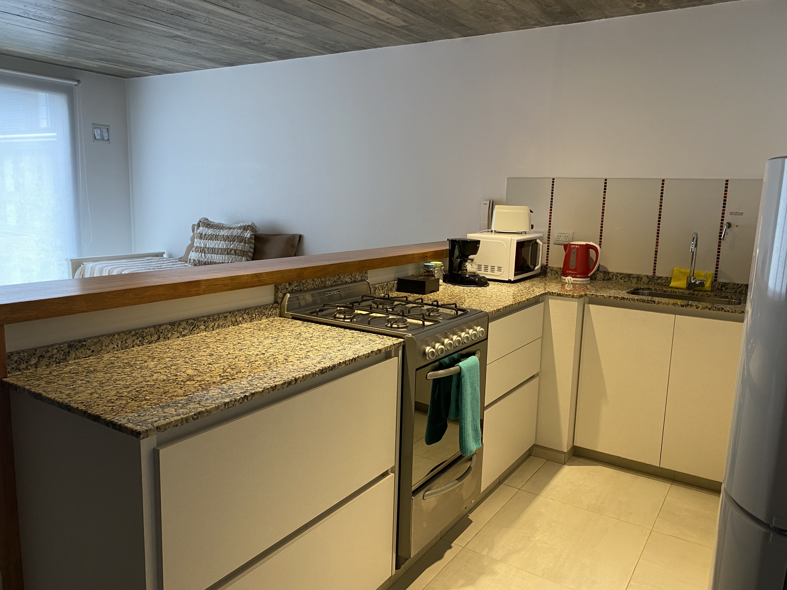 La cocina americana, de gas, está equipada con nevera, microondas, horno, congelador, vajilla/cubertería, utensilios/cocina, cafetera, tostadora y hervidor de agua.
