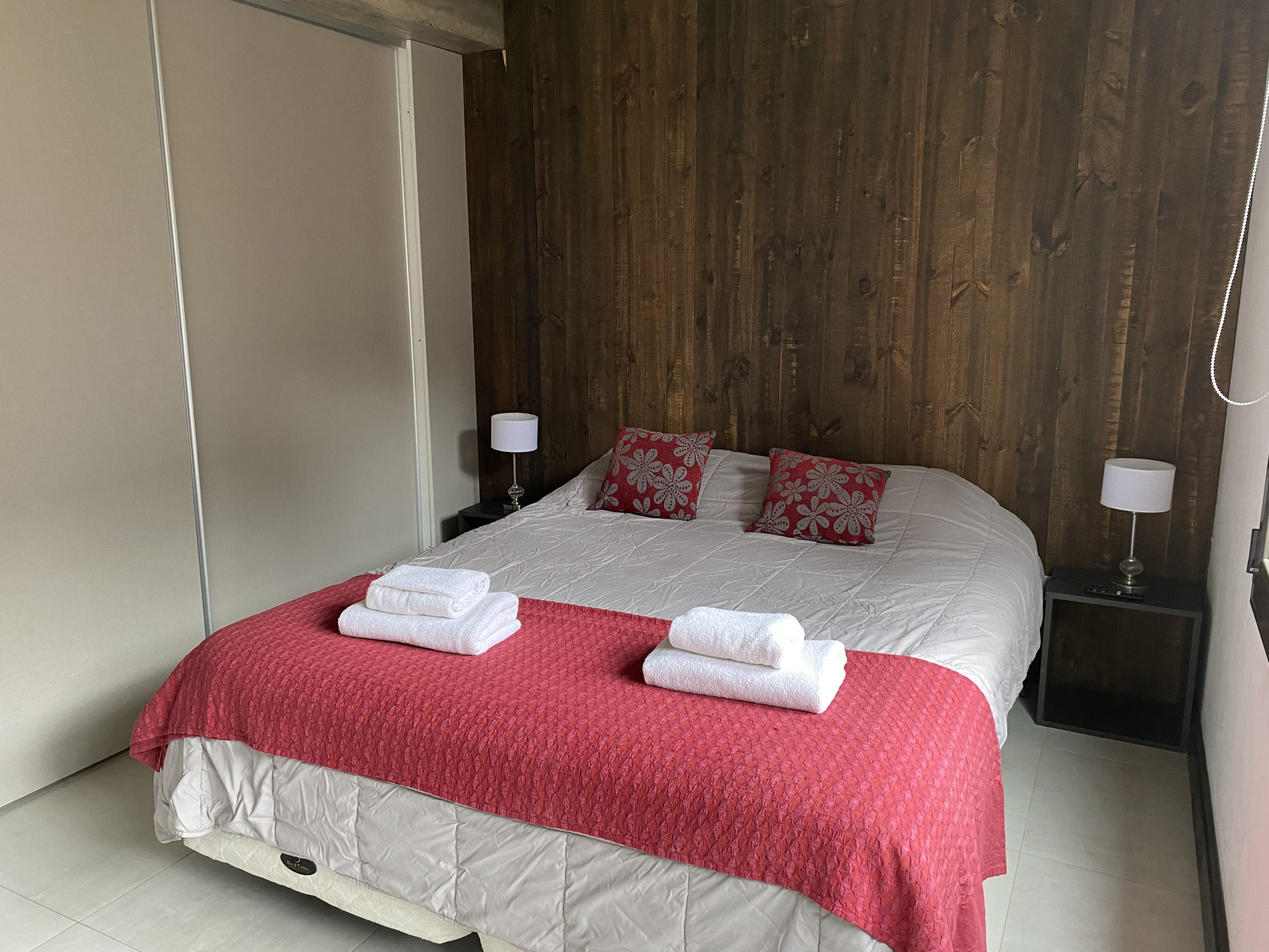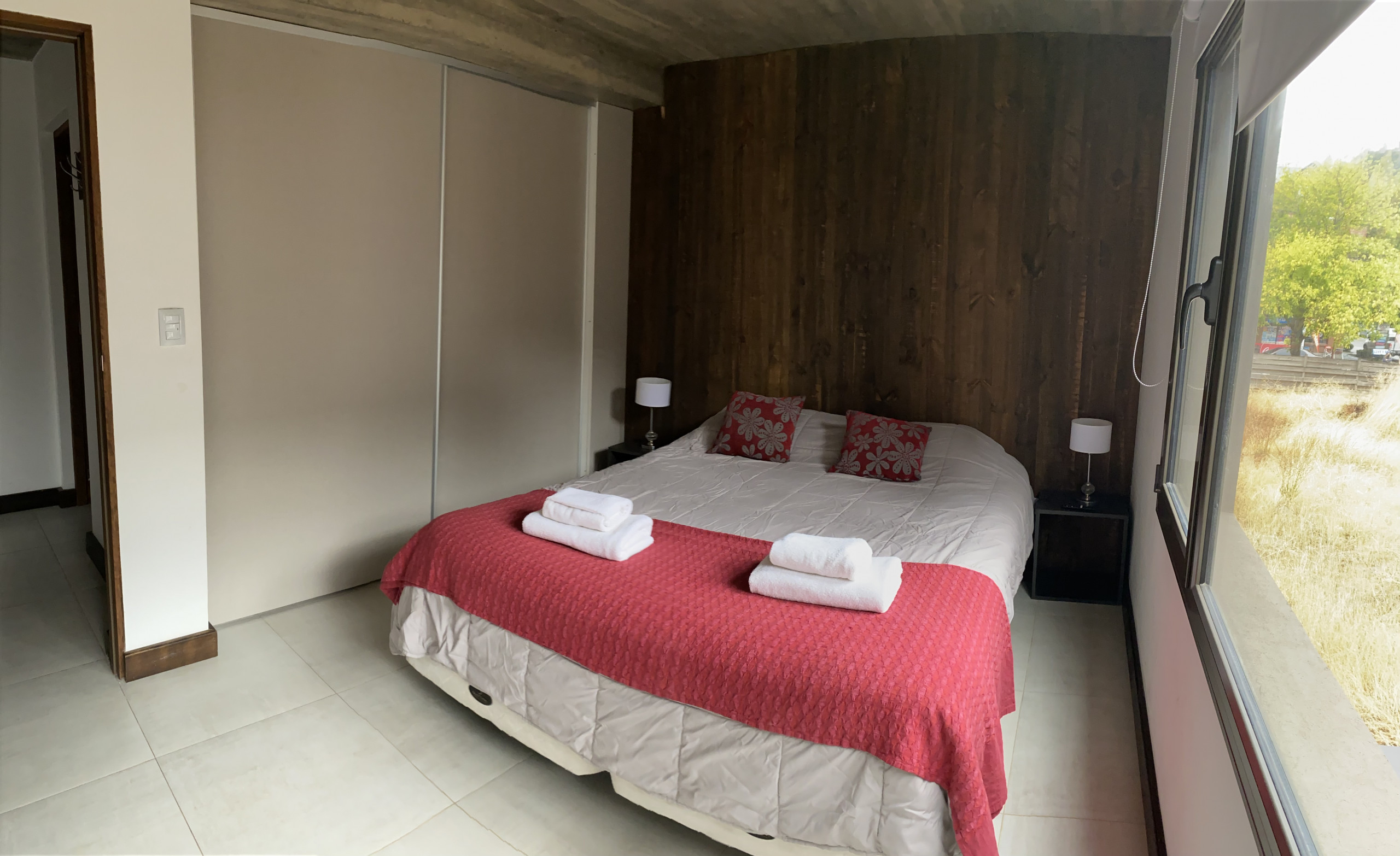 La construcción moderna con materiales nobles, como la madera y la piedra, añade un toque de elegancia y autenticidad al espacio, creando una atmósfera acogedora y lujosa. Con capacidad para cuatro personas, el dormitorio matrimonial proporciona intimidad, mientras que las dos camas individuales en el living aseguran flexibilidad para grupos o familias.