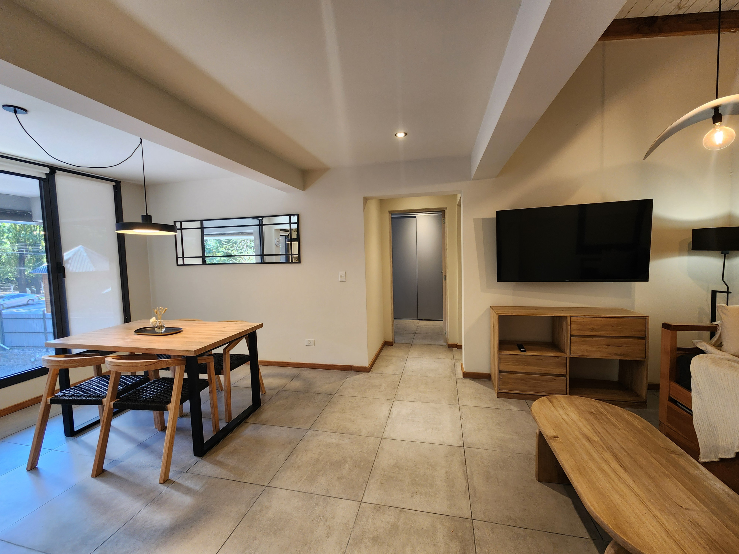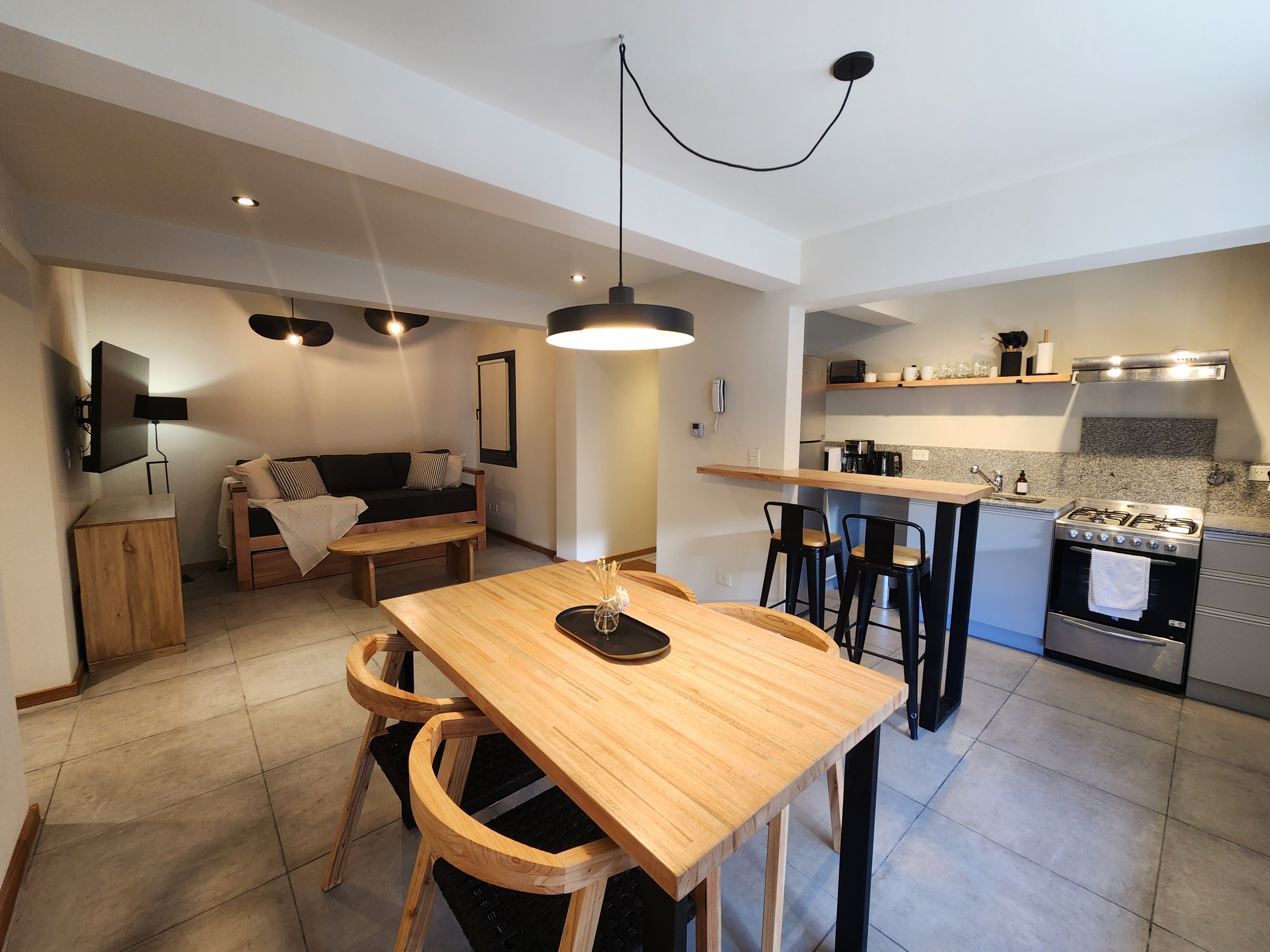 Este moderno apartamento de 60 metros cuadrados ofrece un espacio íntimo y funcional con capacidad para 4 personas. Cuenta con una habitación principal con una cama queen size y dos sofás adicionales que permiten alojamiento flexible para todos los huéspedes.