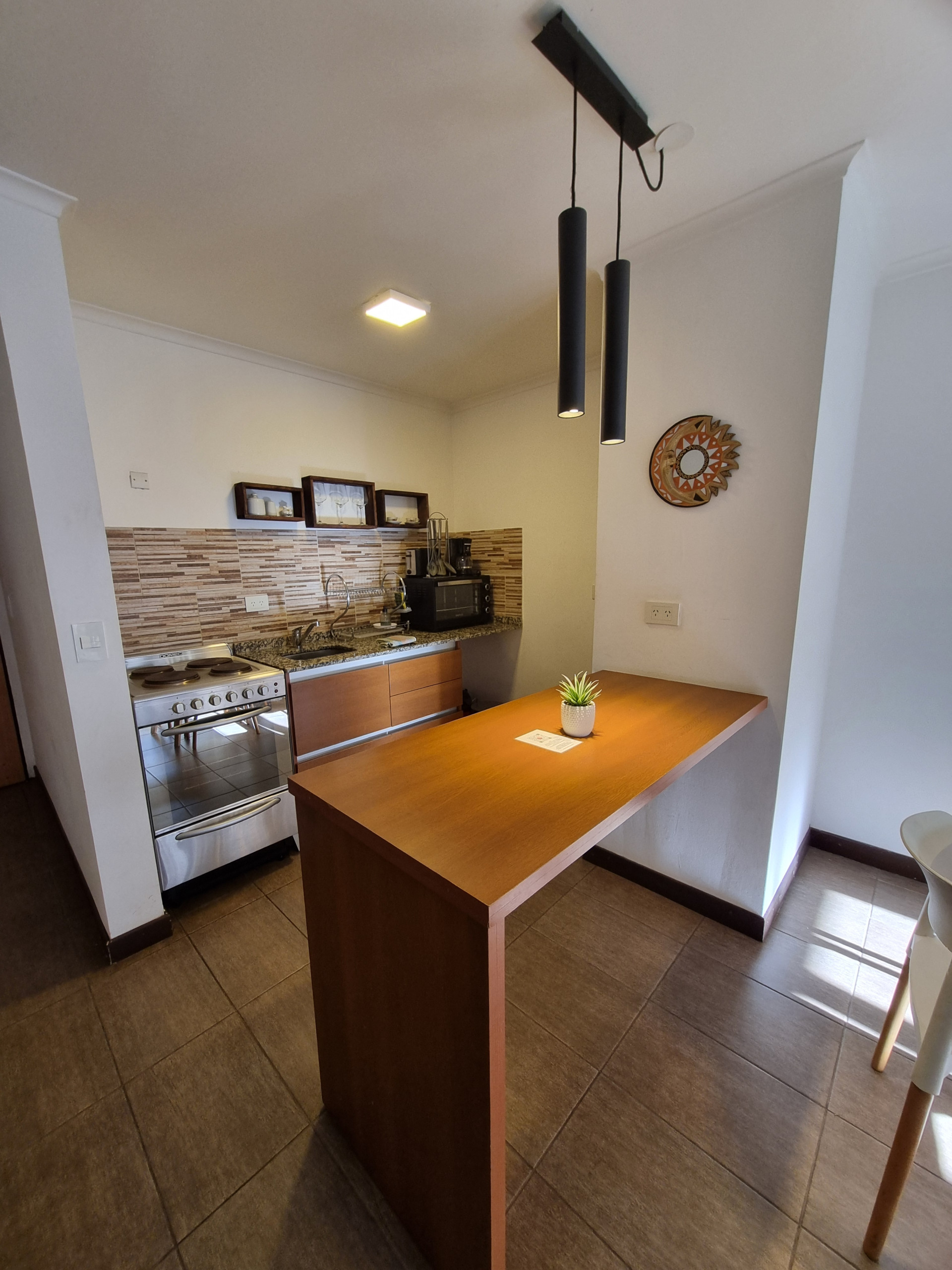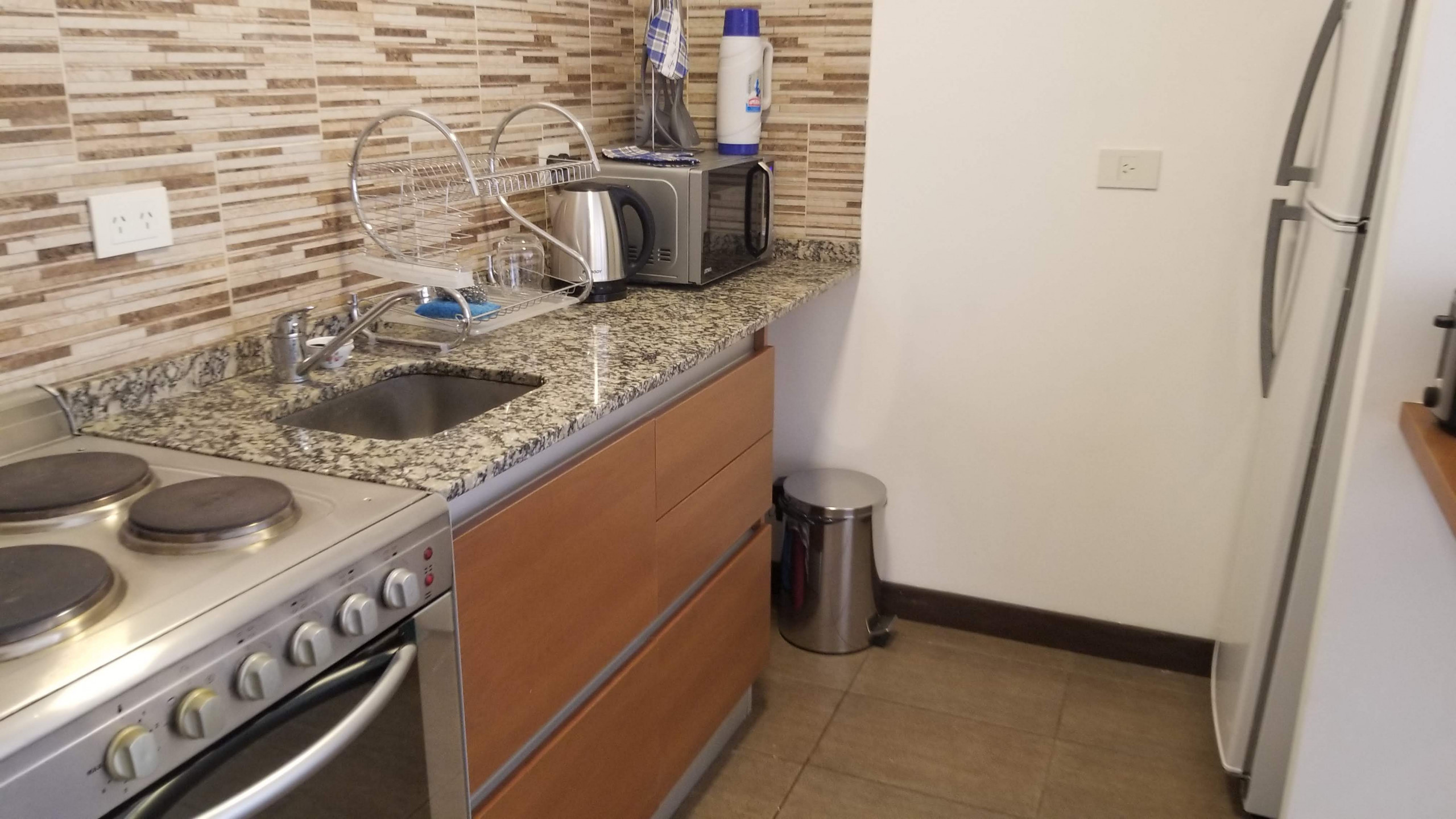 La cocina americana está completamente equipada con electrodomésticos modernos, incluyendo refrigerador, horno, microondas, cafetera, tostadora y hervidor. Además, encontrarás todos los utensilios de cocina necesarios para preparar deliciosas comidas durante tu estadía.