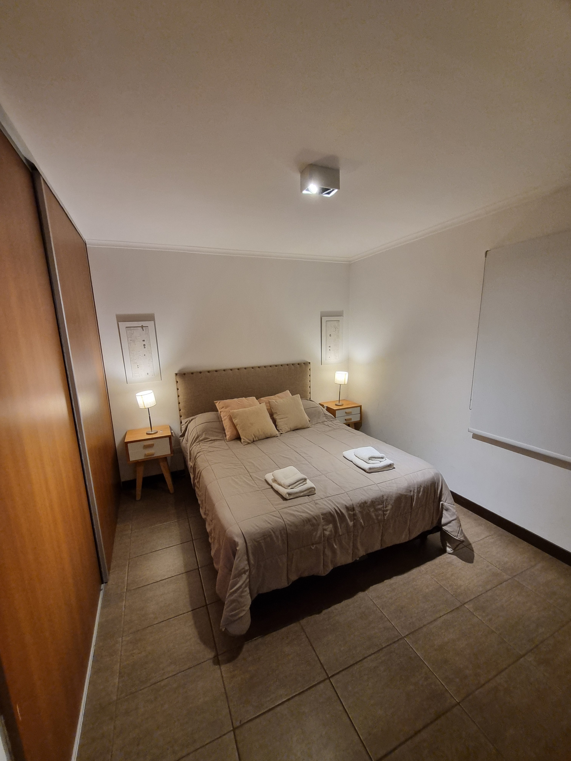 El apartamento cuenta con una cómoda distribución que incluye un dormitorio con una cama queen size y un sofá cama, ideal para acomodar hasta 4 personas. La calefacción central garantiza un ambiente cálido y confortable durante todo el año, especialmente en las noches frías de la región.