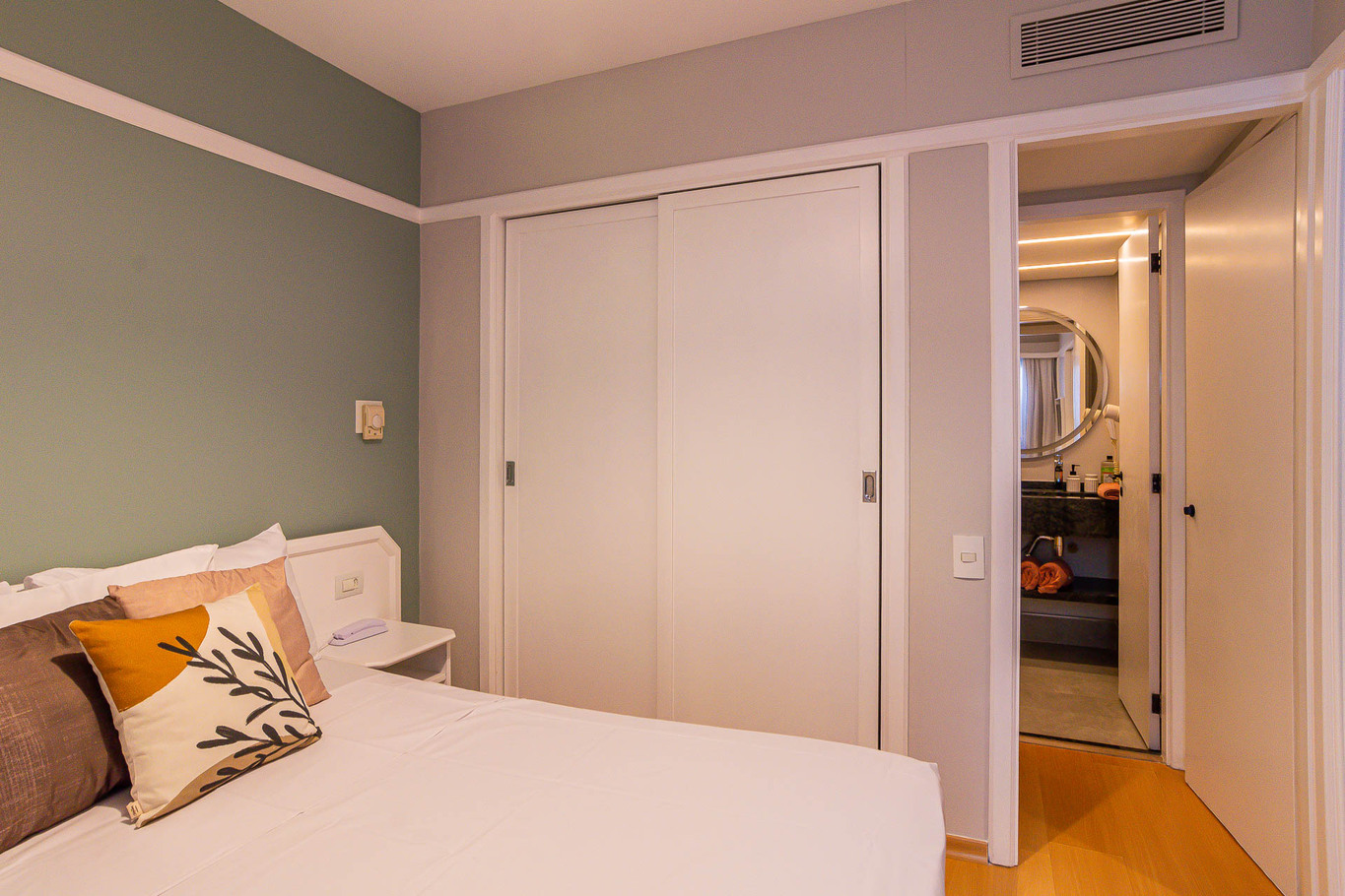 Observación: Puerta reversible en la circulación permite que el baño sea utilizado tanto como social (acceso por la sala) o como suite (acceso por el dormitorio)