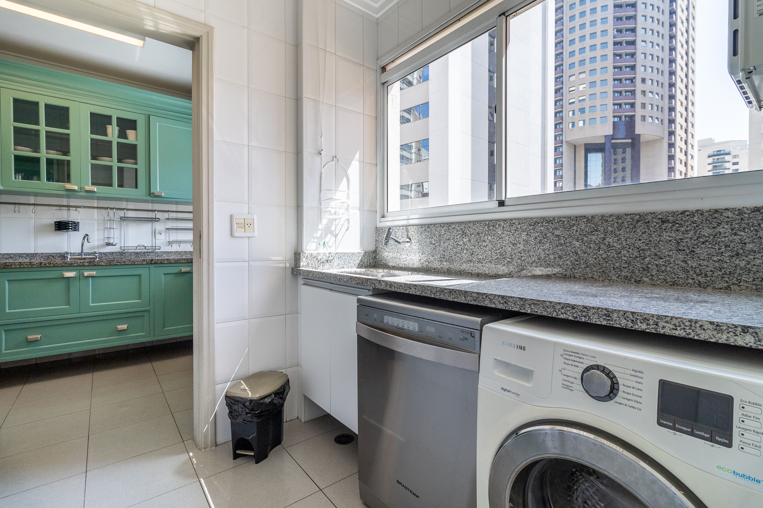 Apartamento en Itaim a metros del Hospital Sírio Libanês, muy amplio y cómodo. Cuenta con 2 recámaras, una de las cuales es suite, además de un baño y un toilette, comedor, sala y TV por cable (55 pulgadas), cocina completa y lavandería.