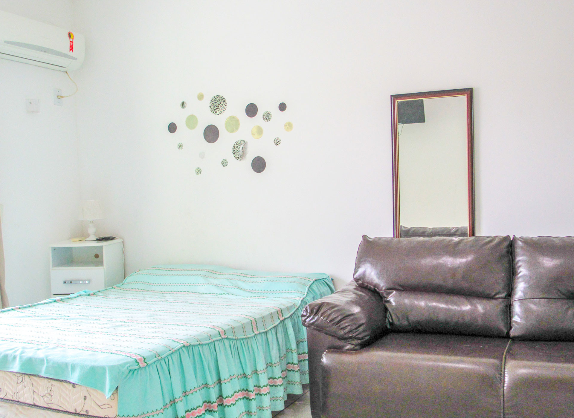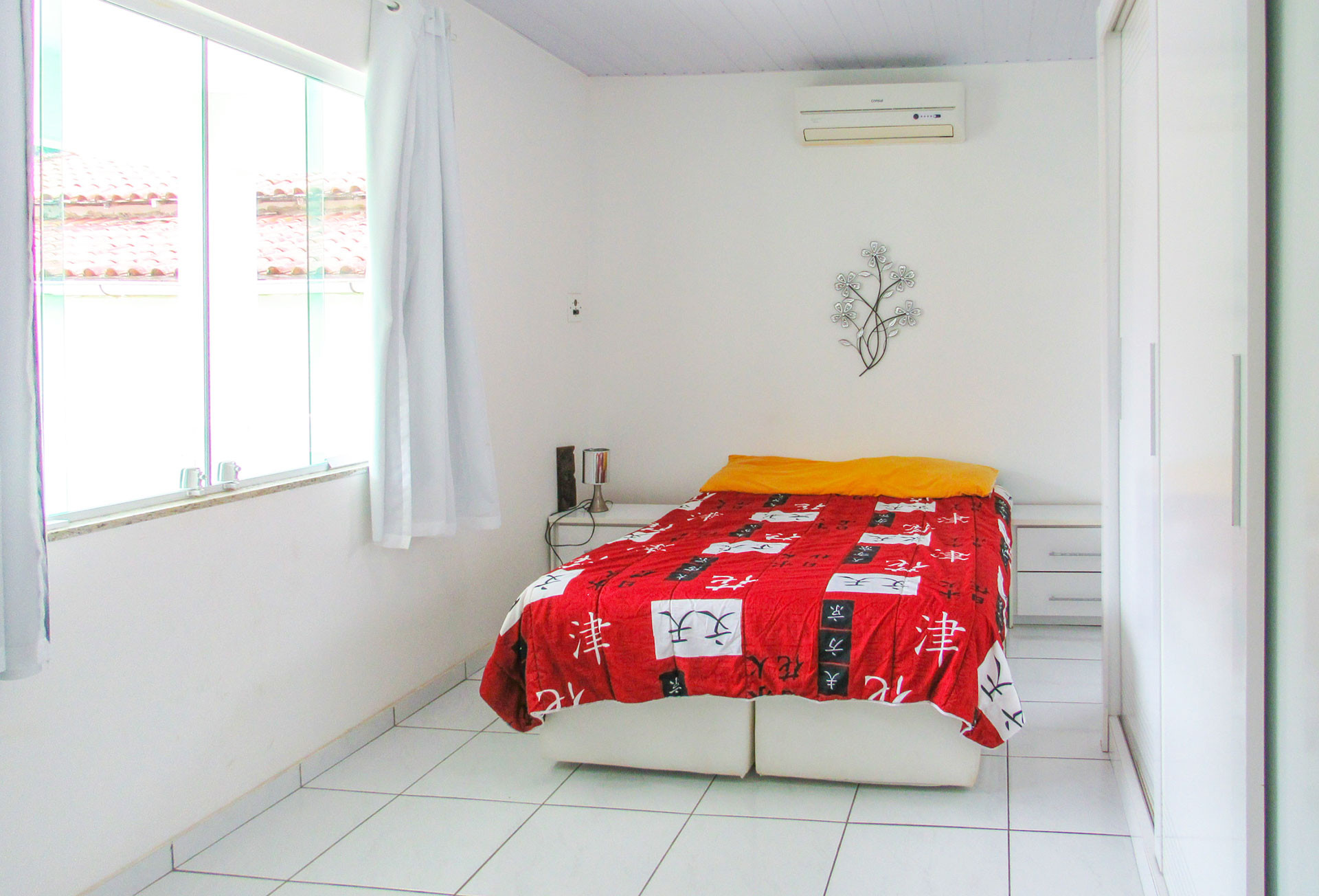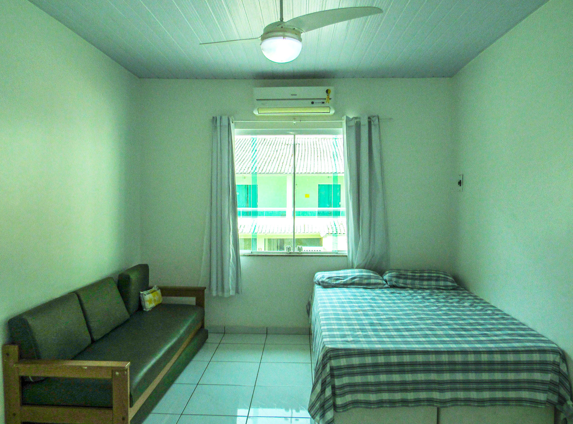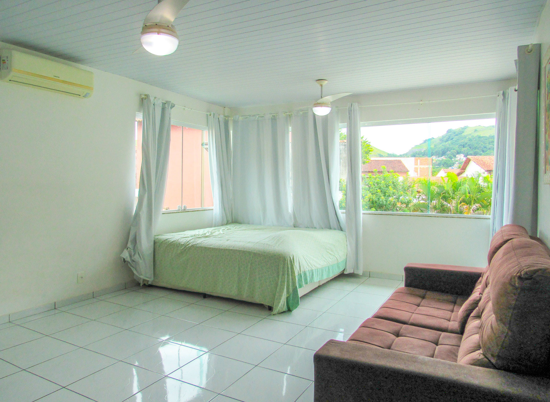 - Os quartos são suítes e possuem armário, TV, ventilador de teto, chuveiro elétrico e box de vidro/acrílico