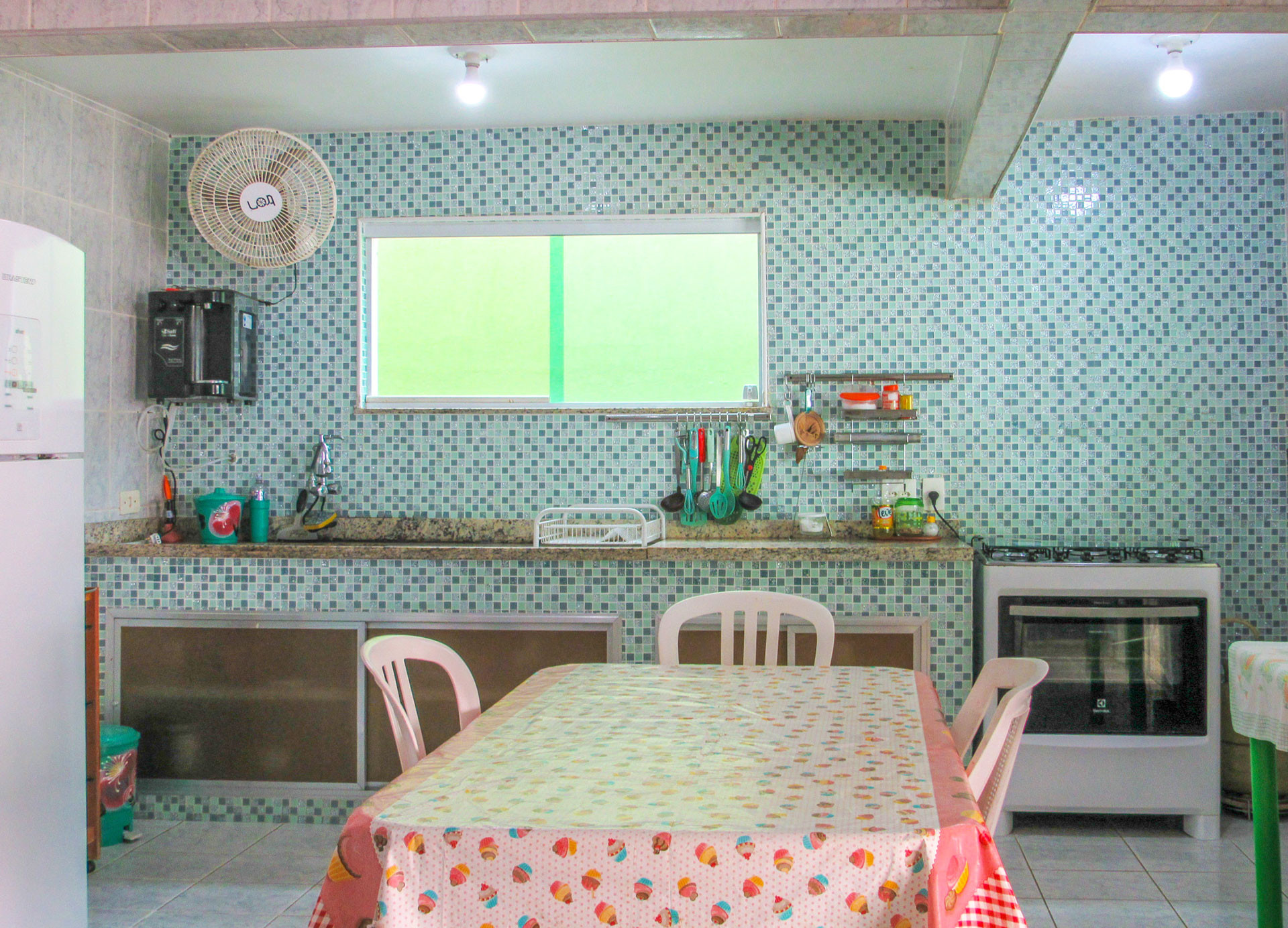 - Cozinha equipada com todos os utensílios necessários para suas refeições, incluindo fogão, geladeira, liquidificador e micro-ondas