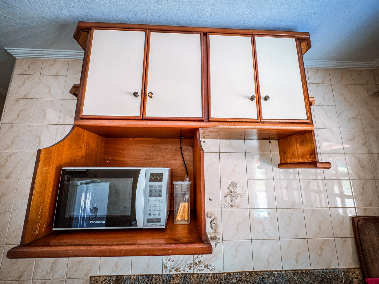 La cocina independiente, de gas, está equipada con nevera, microondas, horno, congelador, vajilla/cubertería, utensilios/cocina, exprimidor y fogones.