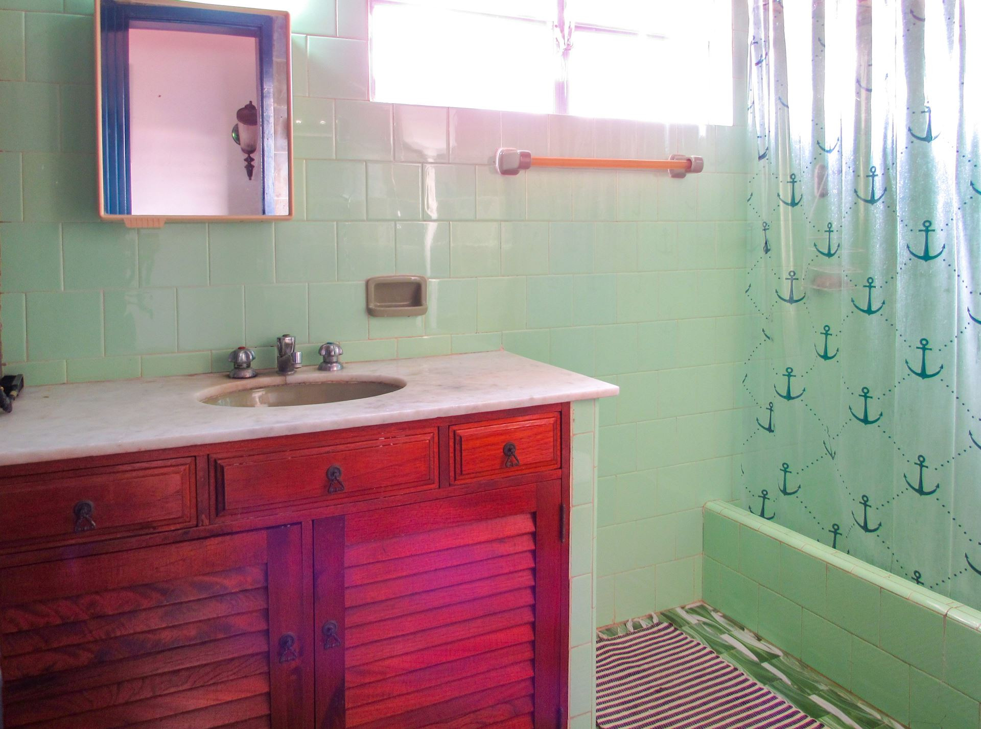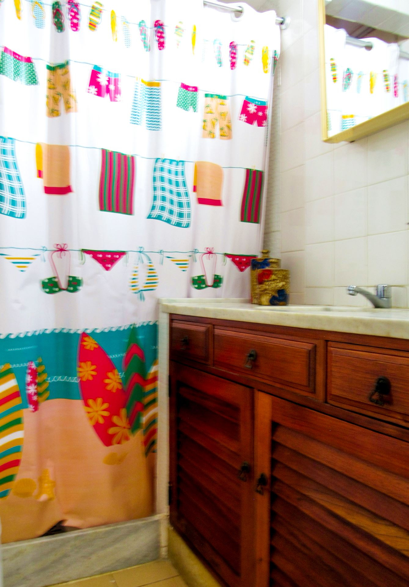 - Os banheiros possuem chuveiro elétrico e cortina