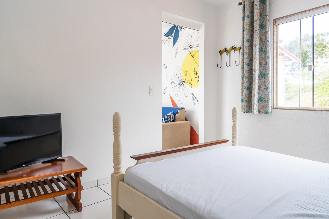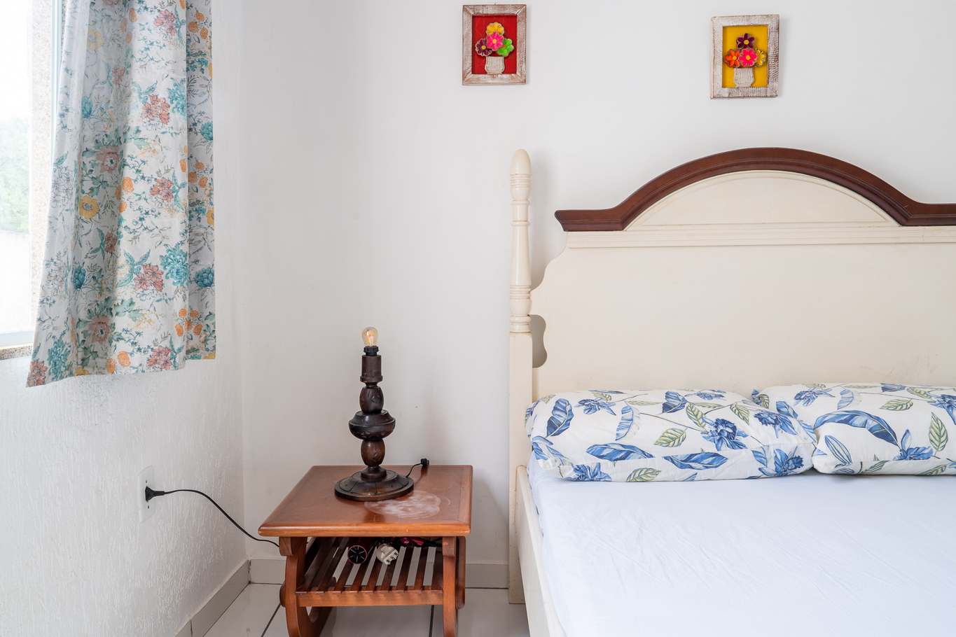 - En la habitación hay 1 cama matrimonial, armario, ventilador de techo, cortina blackout, mesa de noche y lámpara de mesa