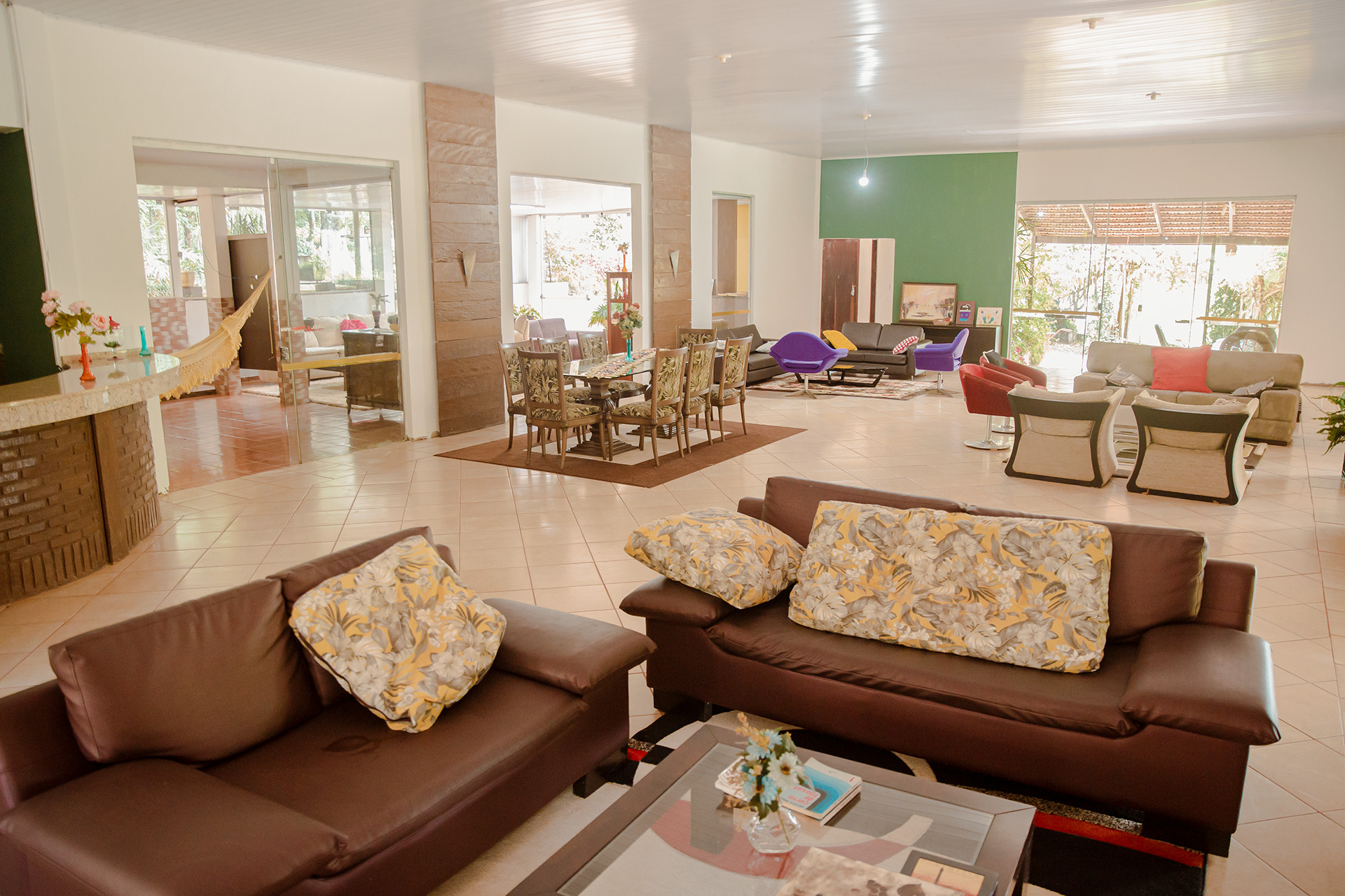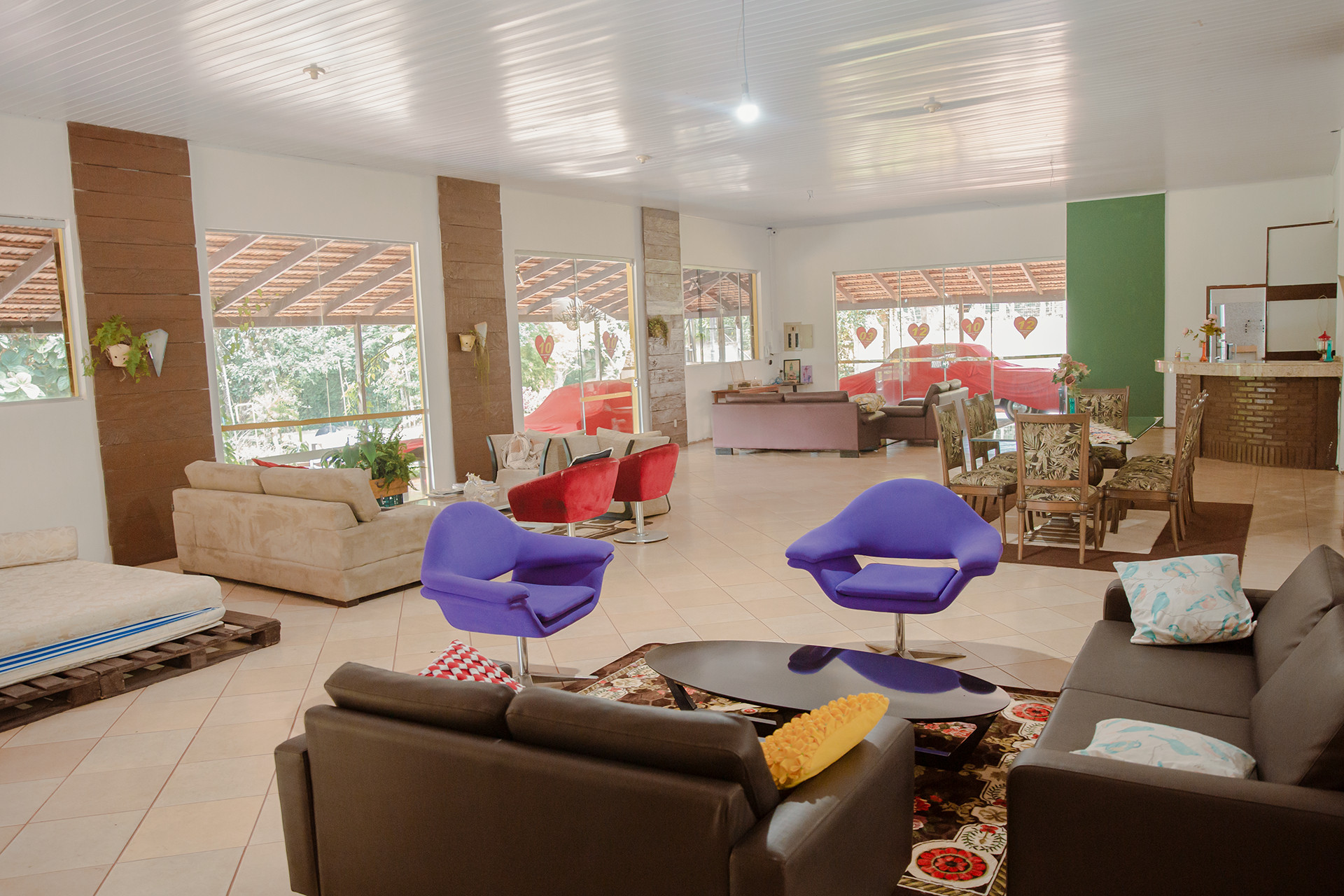 - Na sala você encontra cadeira, mesa de centro e poltrona
