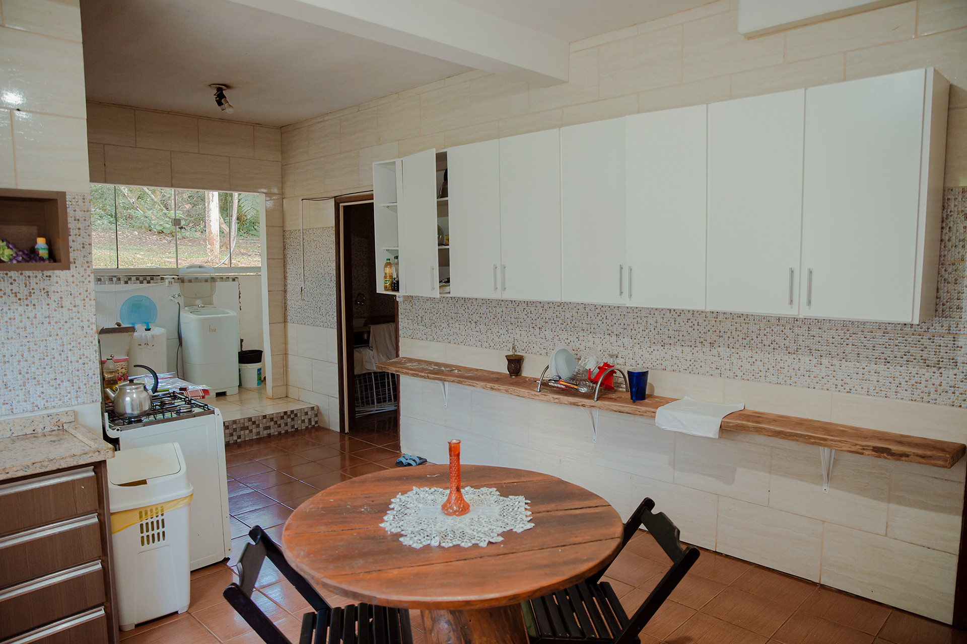 - A cozinha é equipada com todos os utensílios necessários para preparar suas refeições, incluindo cafeteira, freezer, fogão, forno, geladeira, liquidificador, purificador/filtro, balcão e exaustor