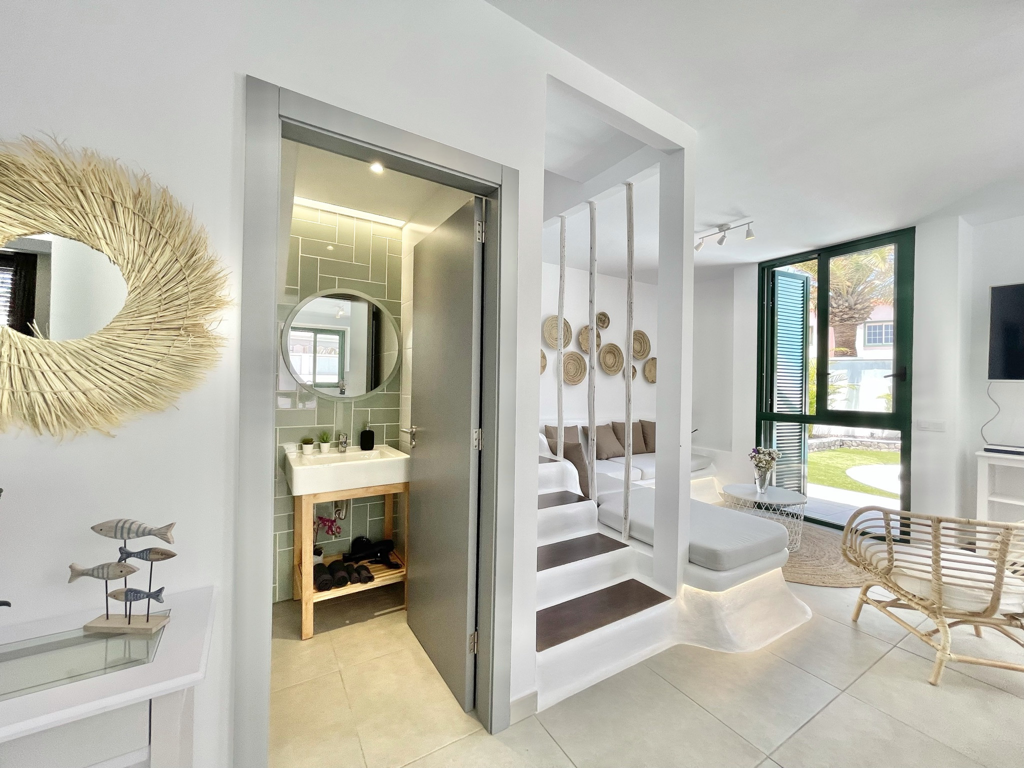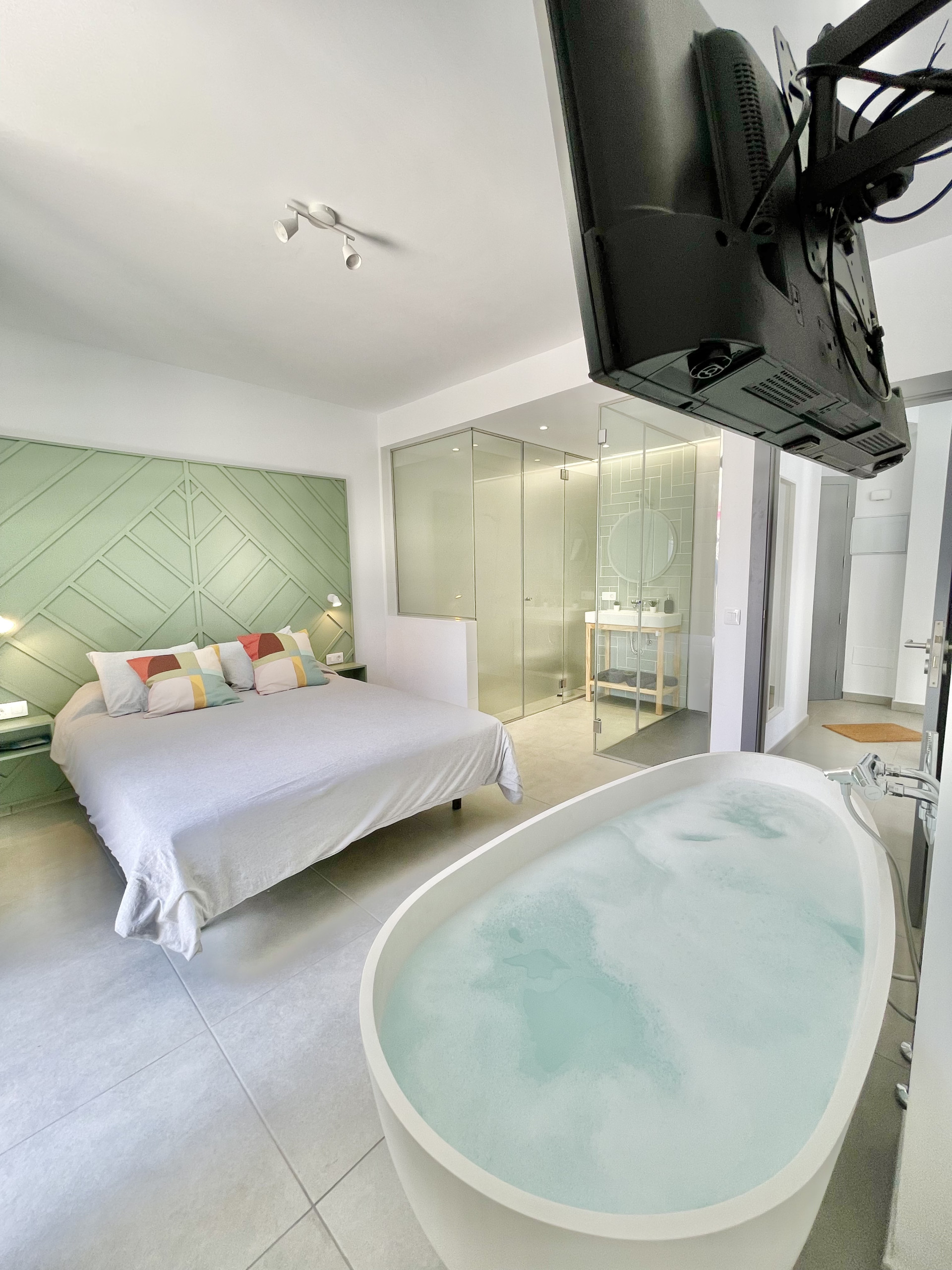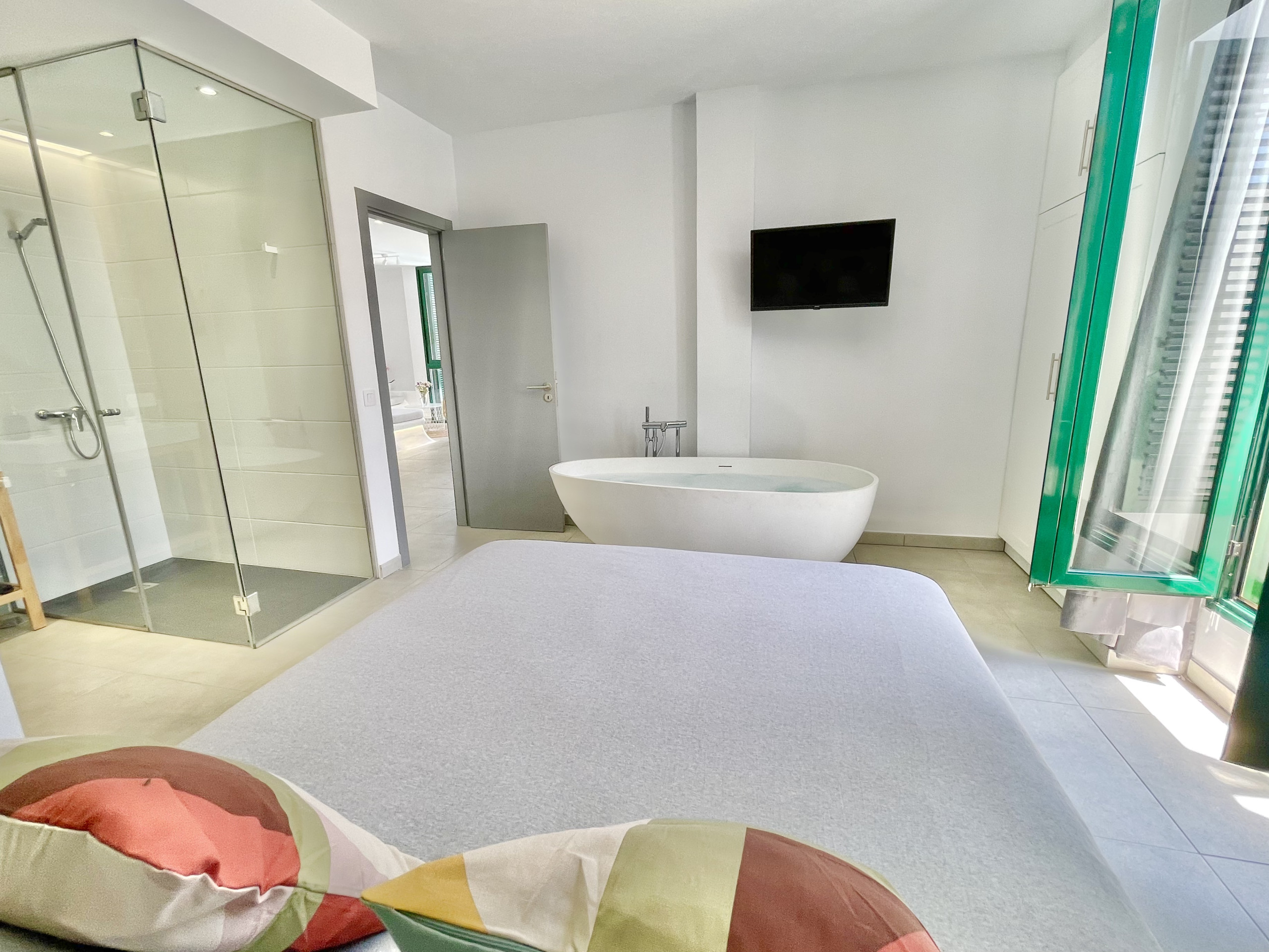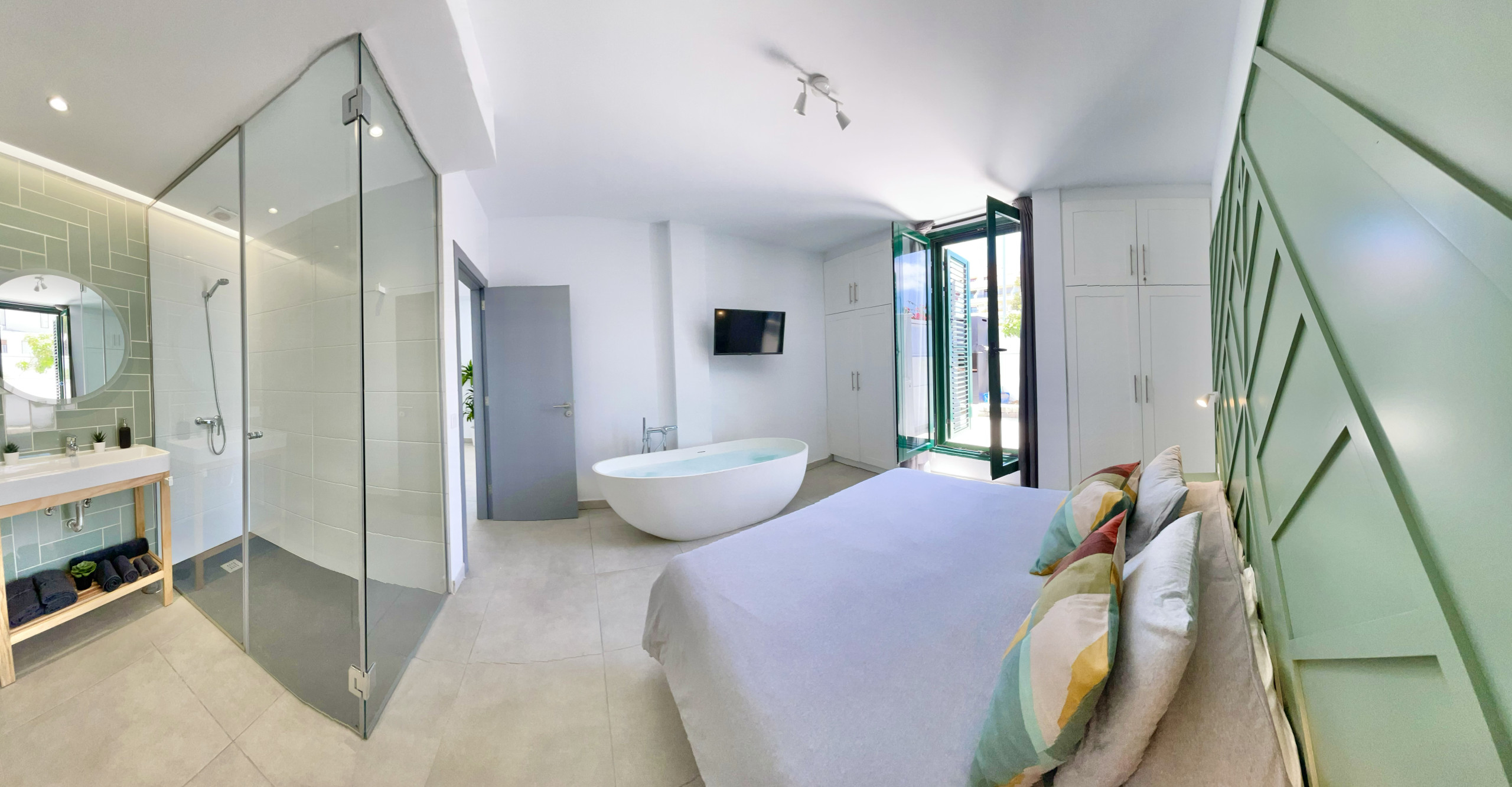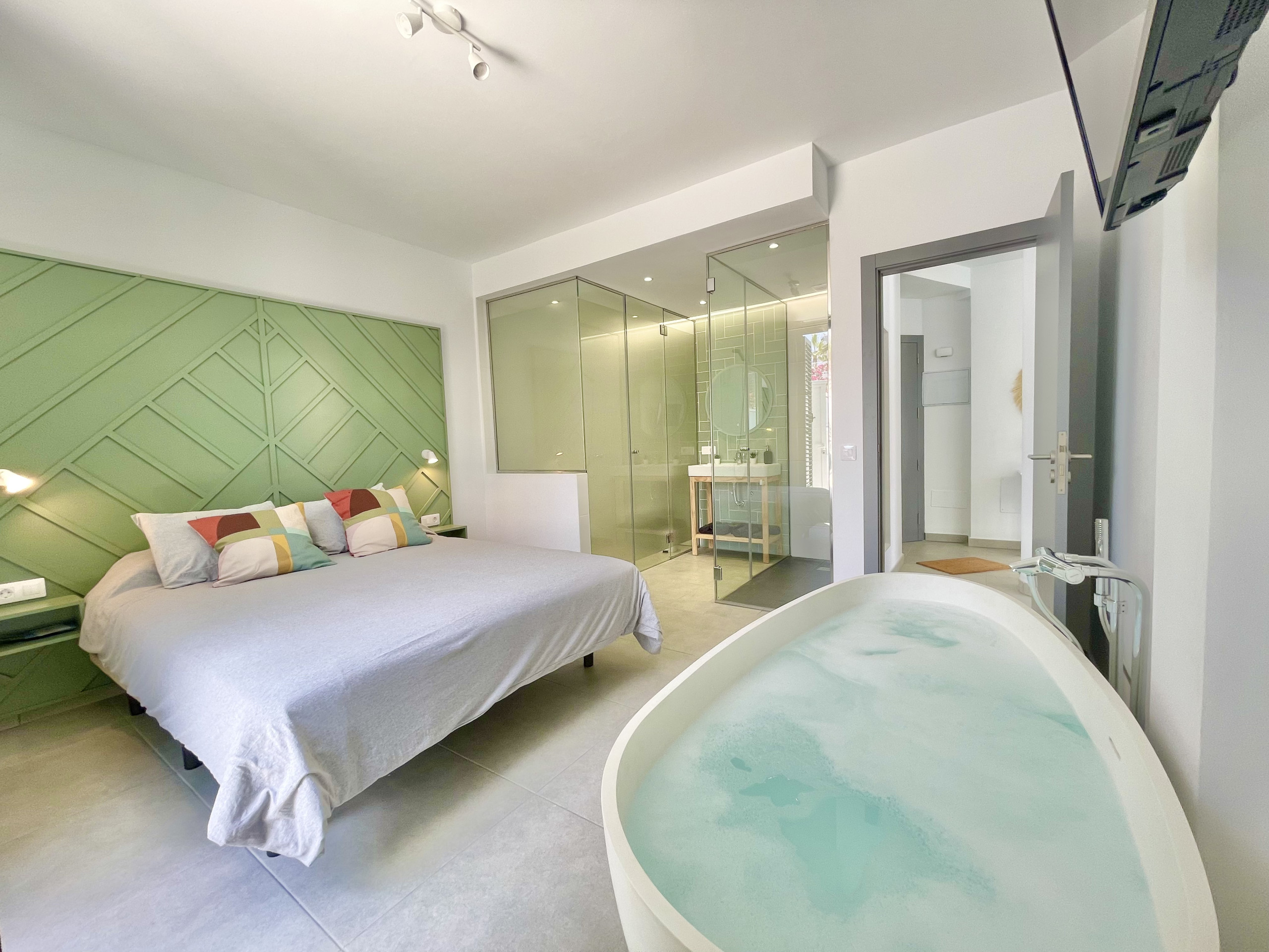 Taucho Suite es una casa de alquiler vacacional con 4 dormitorios ideal para familias y trabajadores remotos. Está dentro de un edificio, pero con acceso privado y piscina privada. En la planta baja tienes una cocina totalmente equipada con todos los electrodomésticos necesarios para cocinar, gran comedor y sala de estar con TV grande (satélite Astra) y wifi, inodoro separado. El dormitorio principal con un gran diseño de su baño y bañera en el dormitorio está abajo, por lo que no hay escalones para caminar. En la primera planta hay 3 dormitorios. Primer dormitorio con baño privado, TV y escritorio. El segundo con balcón. El tercero con TV y escritorio. Hay otro baño para estos 2 dormitorios con bañera. Como está situado en una calle sin salida, es fácil encontrar aparcamiento justo enfrente. Es una zona bastante residencial.