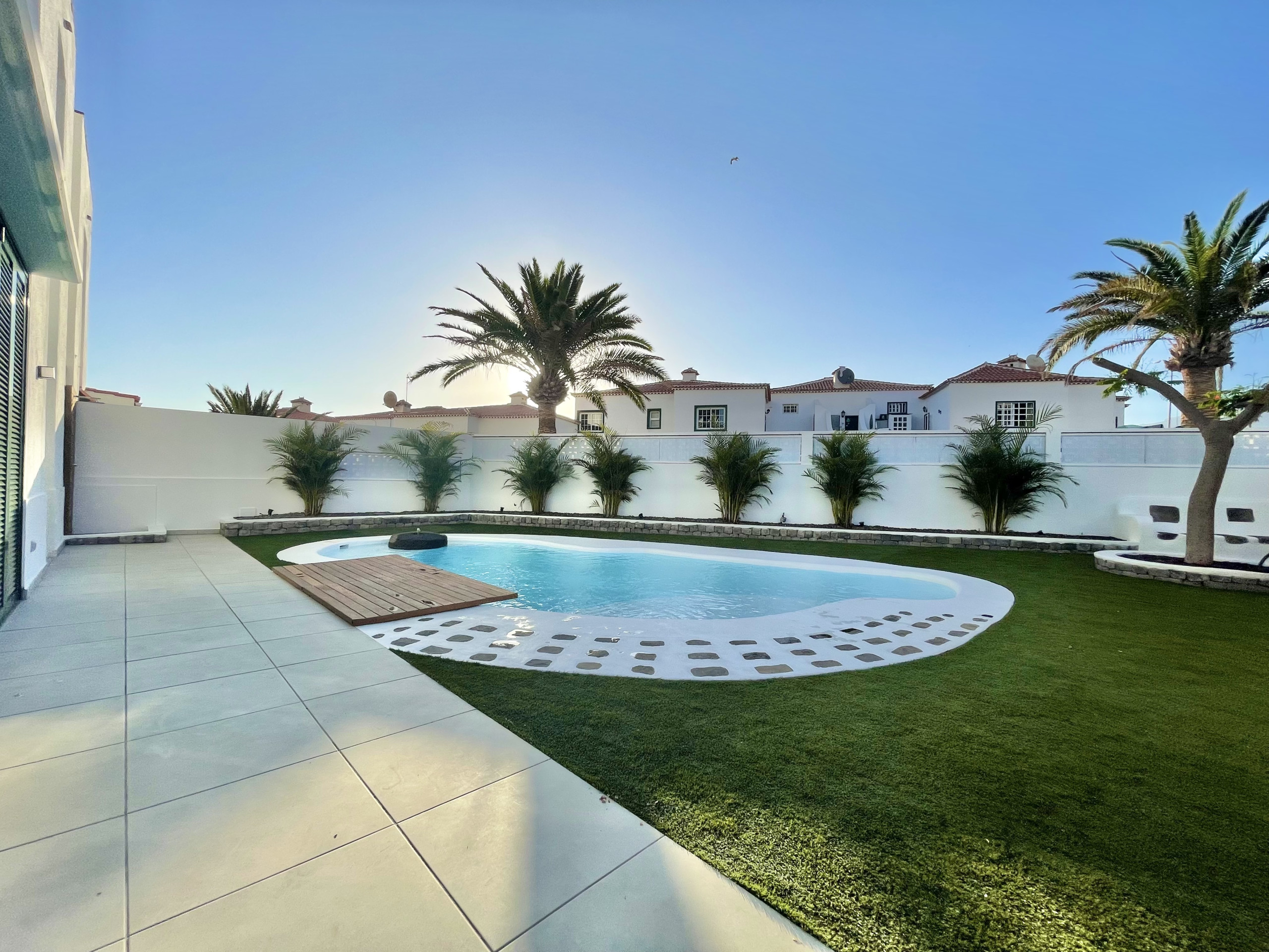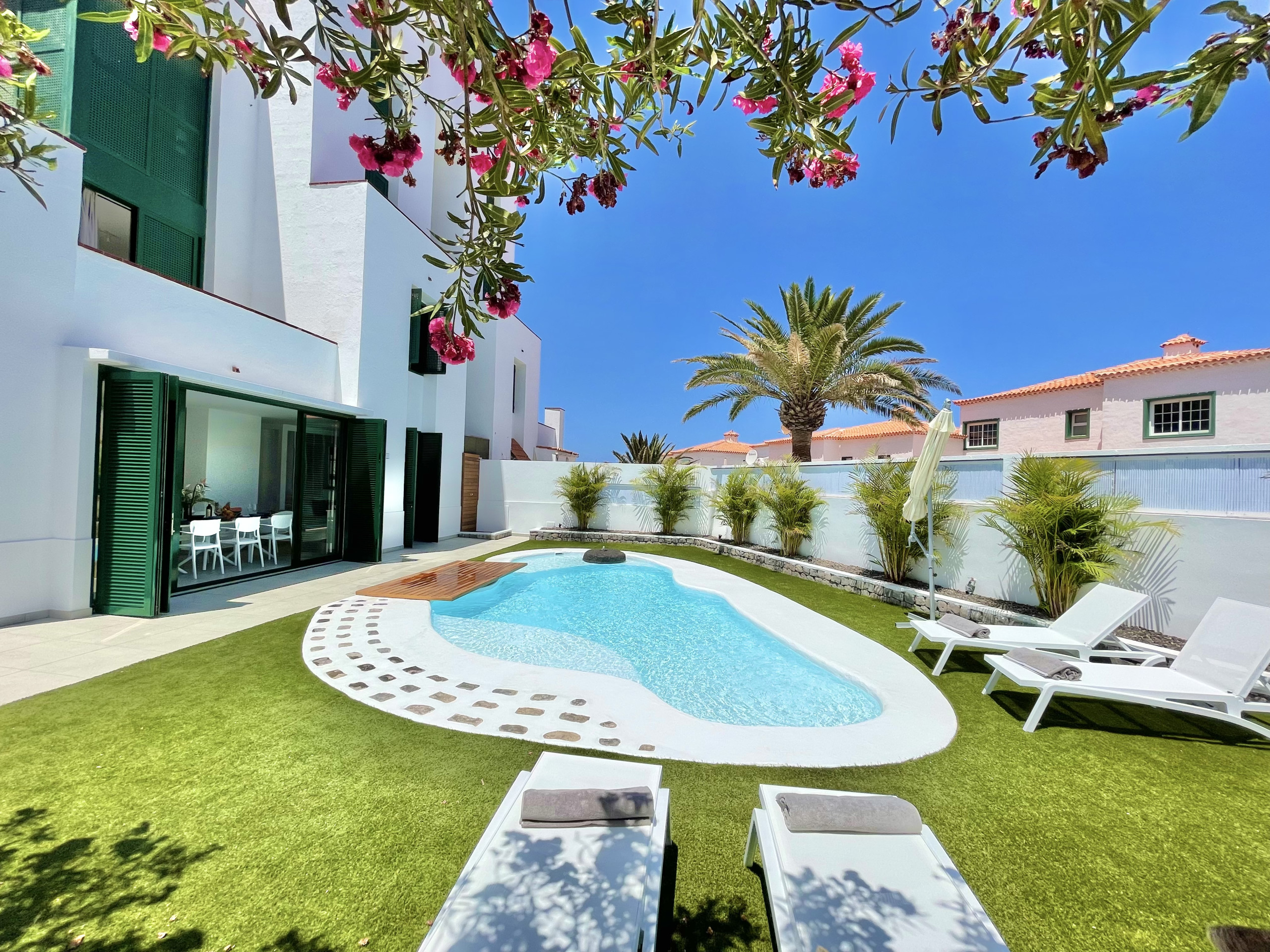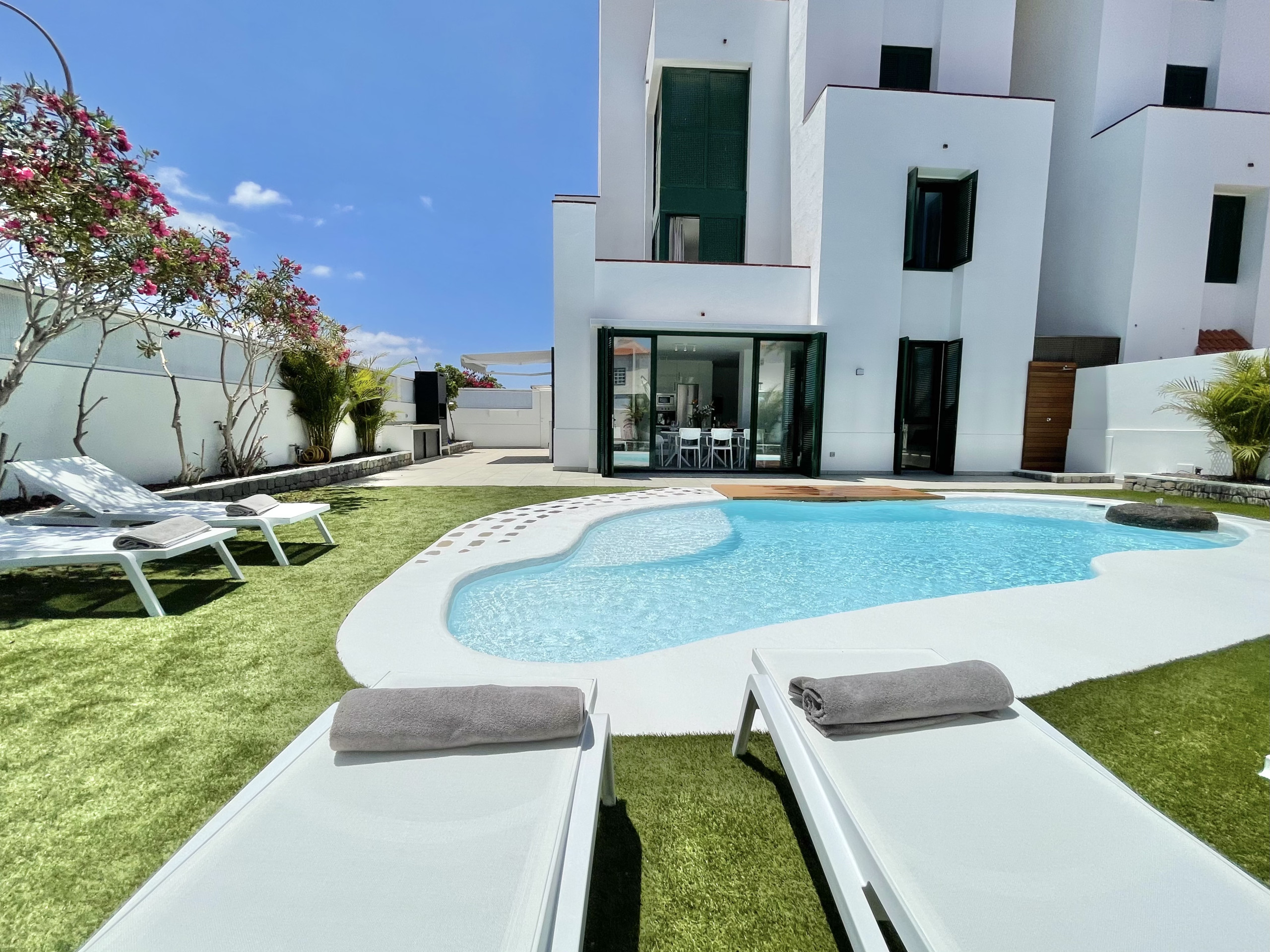 Moderna casa de alquiler vacacional con piscina privada calefactable a solo unos minutos a pie del mar y la playa de Playa la Arena.