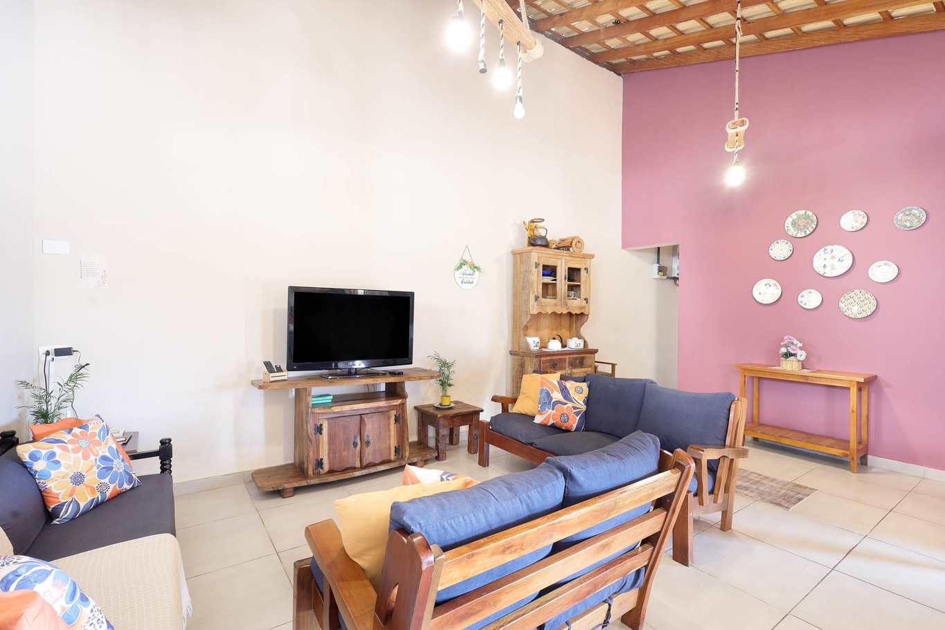 - La sala está equipada con mesa de centro, sistema de sonido y sofá
