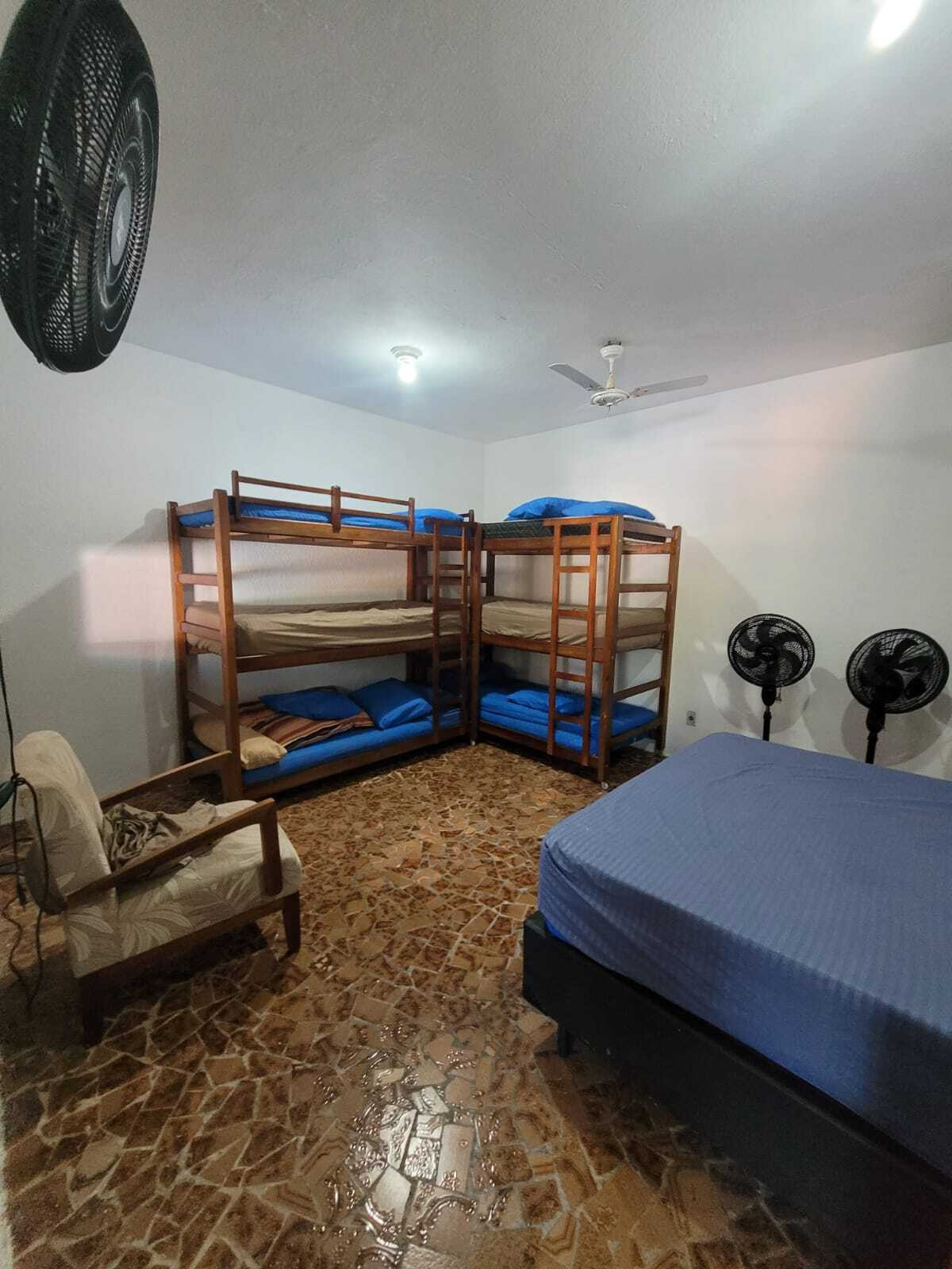 - En la habitación 2 hay 2 camas de matrimonio, 2 literas y un lavabo