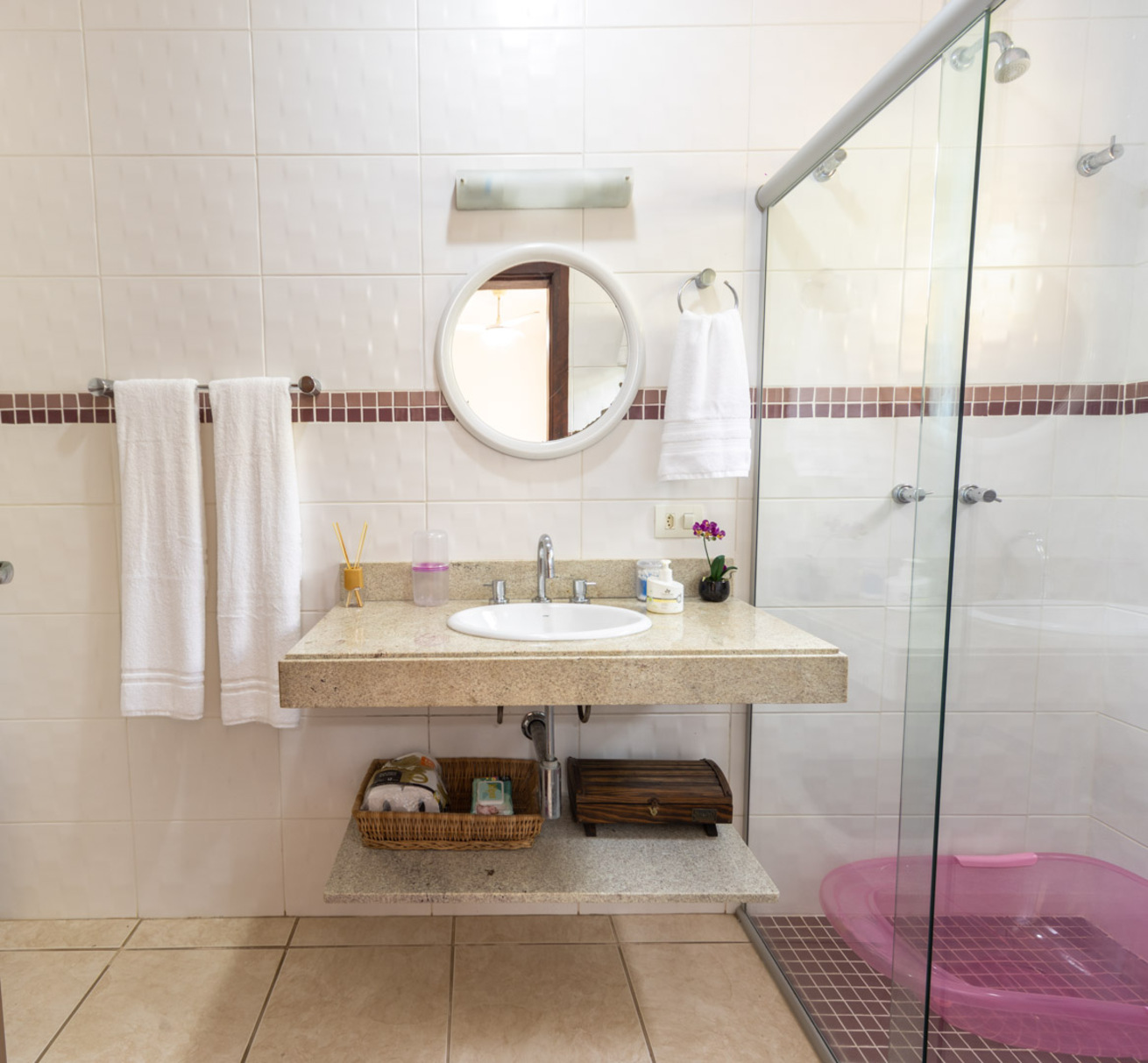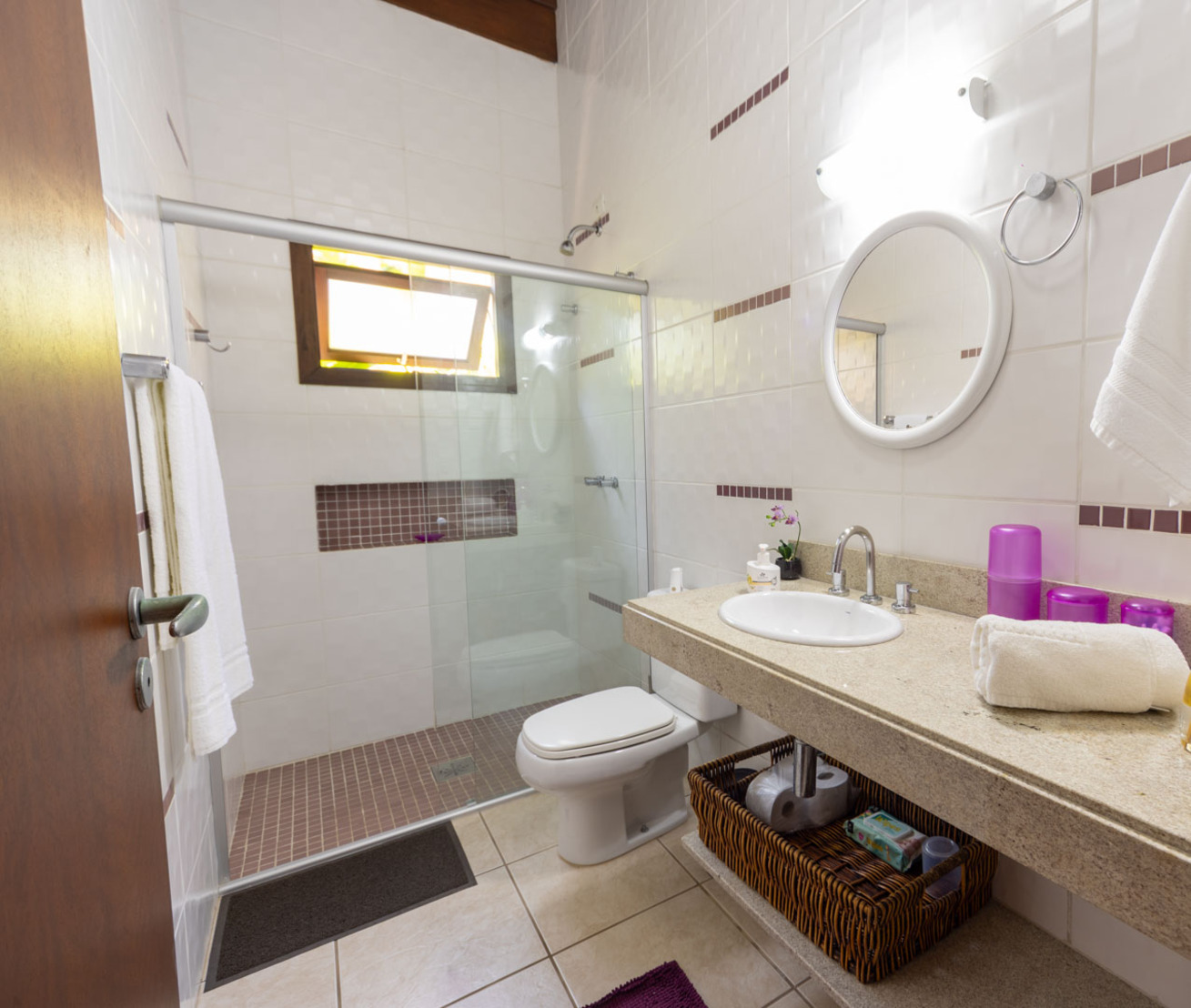 - 3 baños sociales (dos sin mampara y uno con mampara de vidrio).