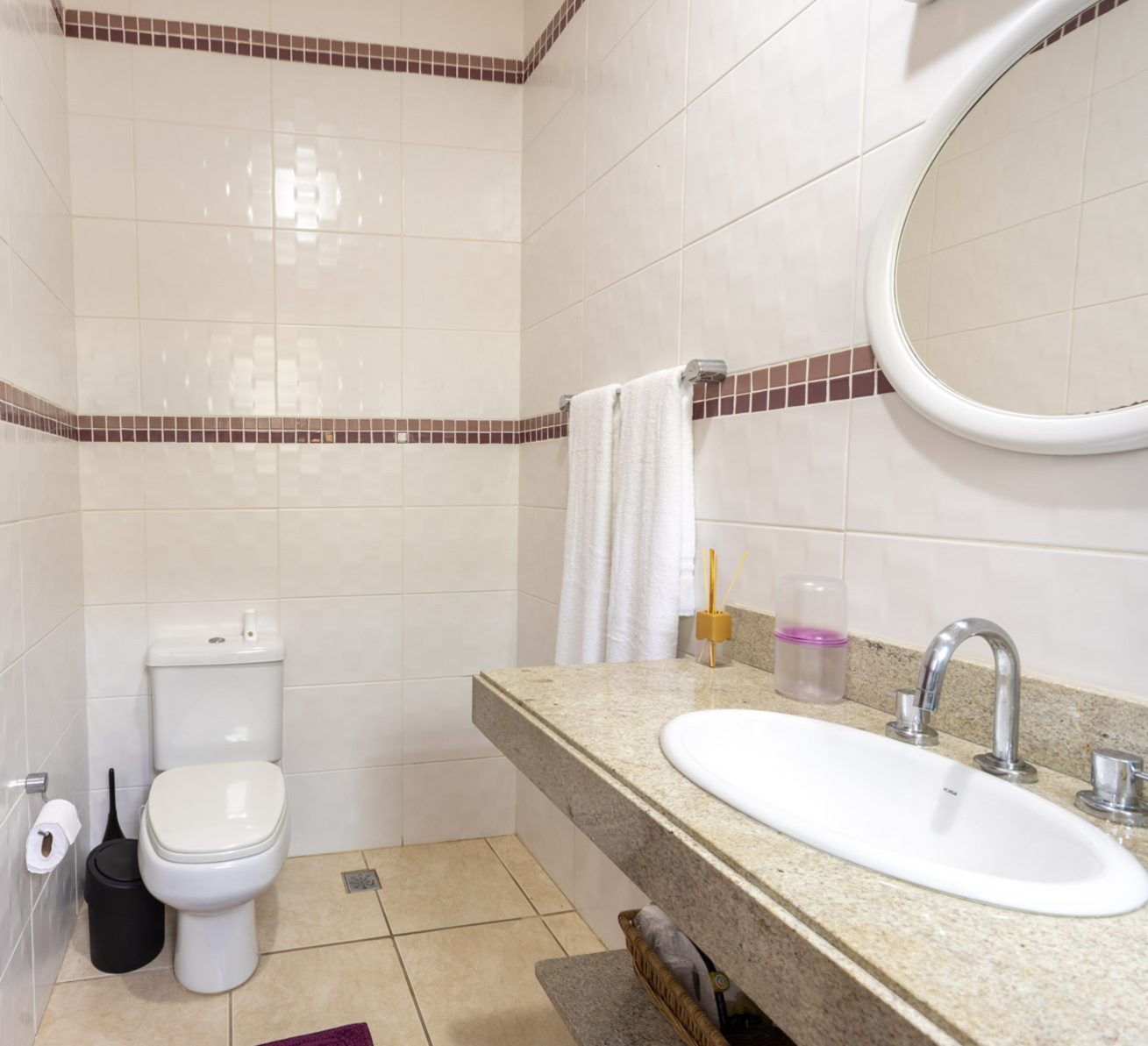 - Área externa: amplio jardín con césped, ducha externa y jardín amplio e iluminado