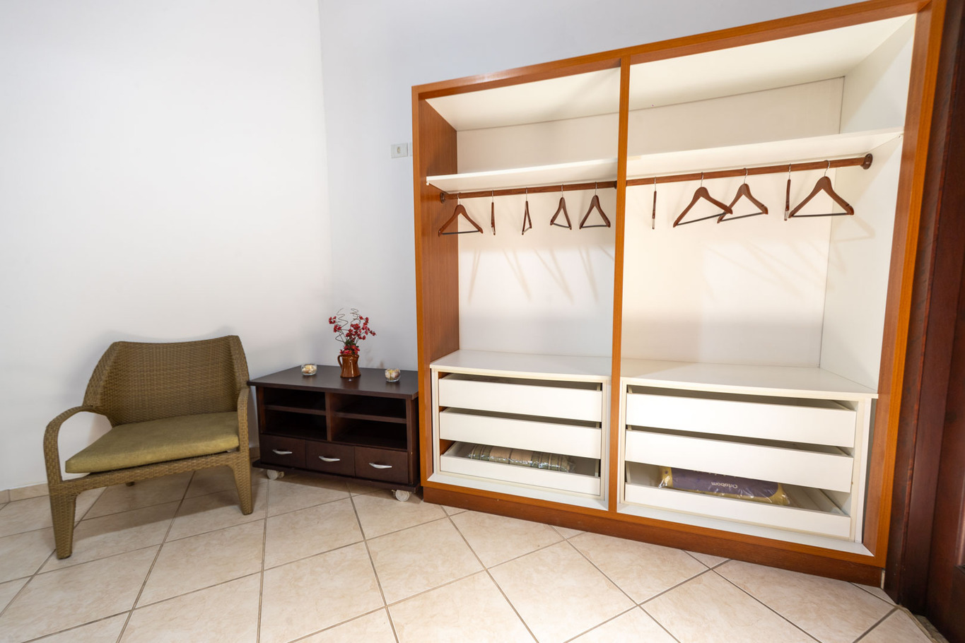 - Suite 1: cama de matrimonio, cama individual, armario, ventilador de techo, baño privado con ducha eléctrica (sin mampara).