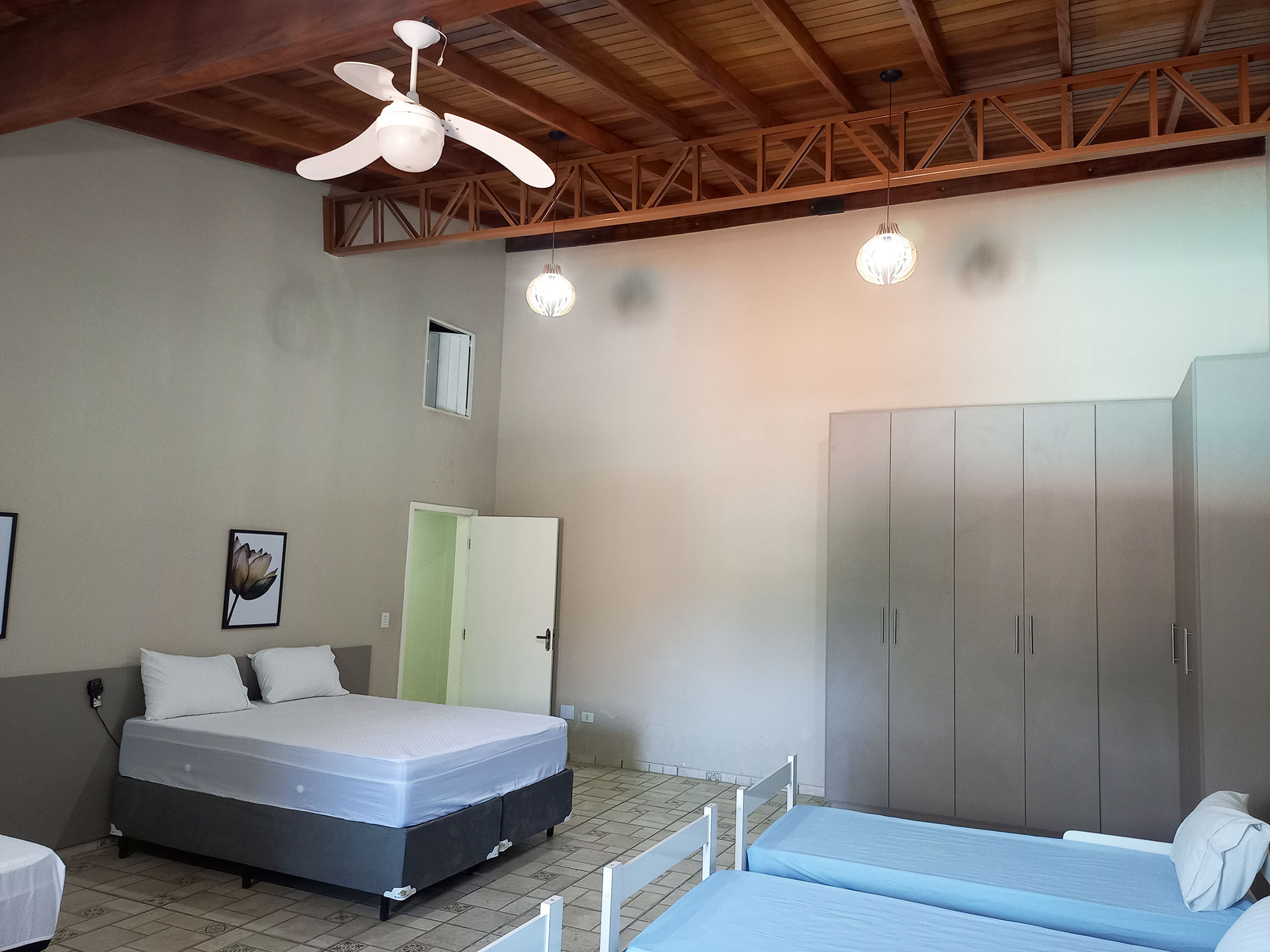 - No quarto 2 há 2 camas queen size (1 colchão massageador e 1 normal), 4 camas de solteiro e 2 colchões extras de solteiro