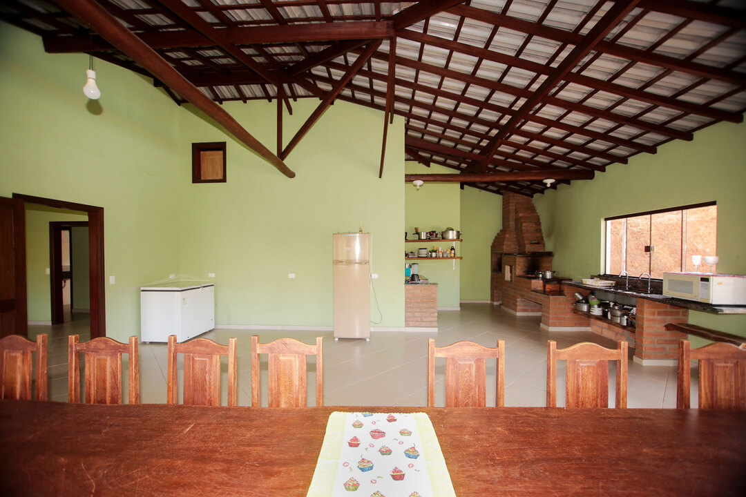 - A cozinha é simples, mas tem tudo que você precisa para preparar refeições, incluindo freezer, fogão, geladeira, liquidificador, micro-ondas, balcão e mesa