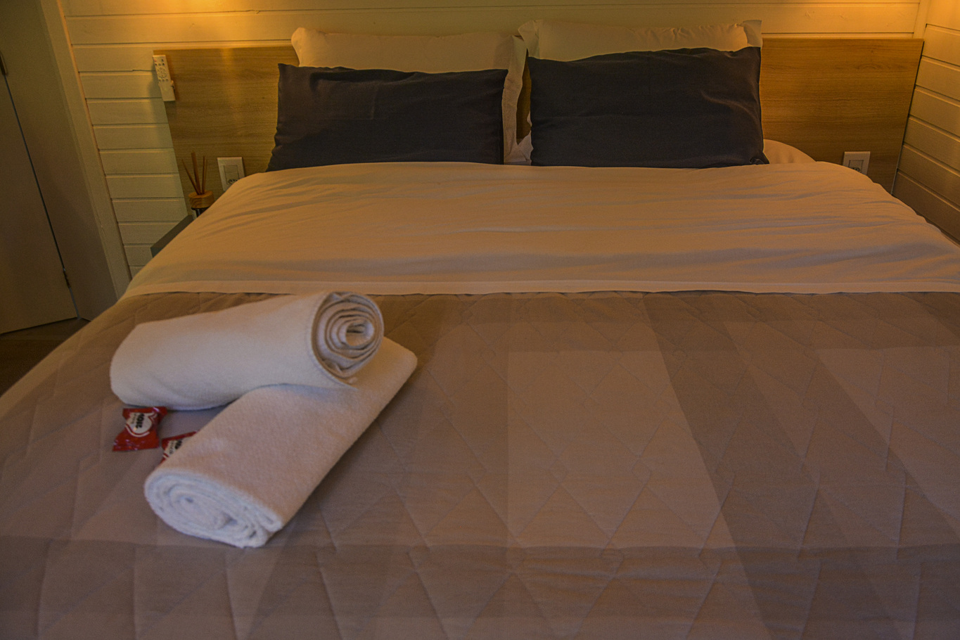 - Dormitorio equipado con 1 cama queen size, armario, edredón/manta y protector de colchón