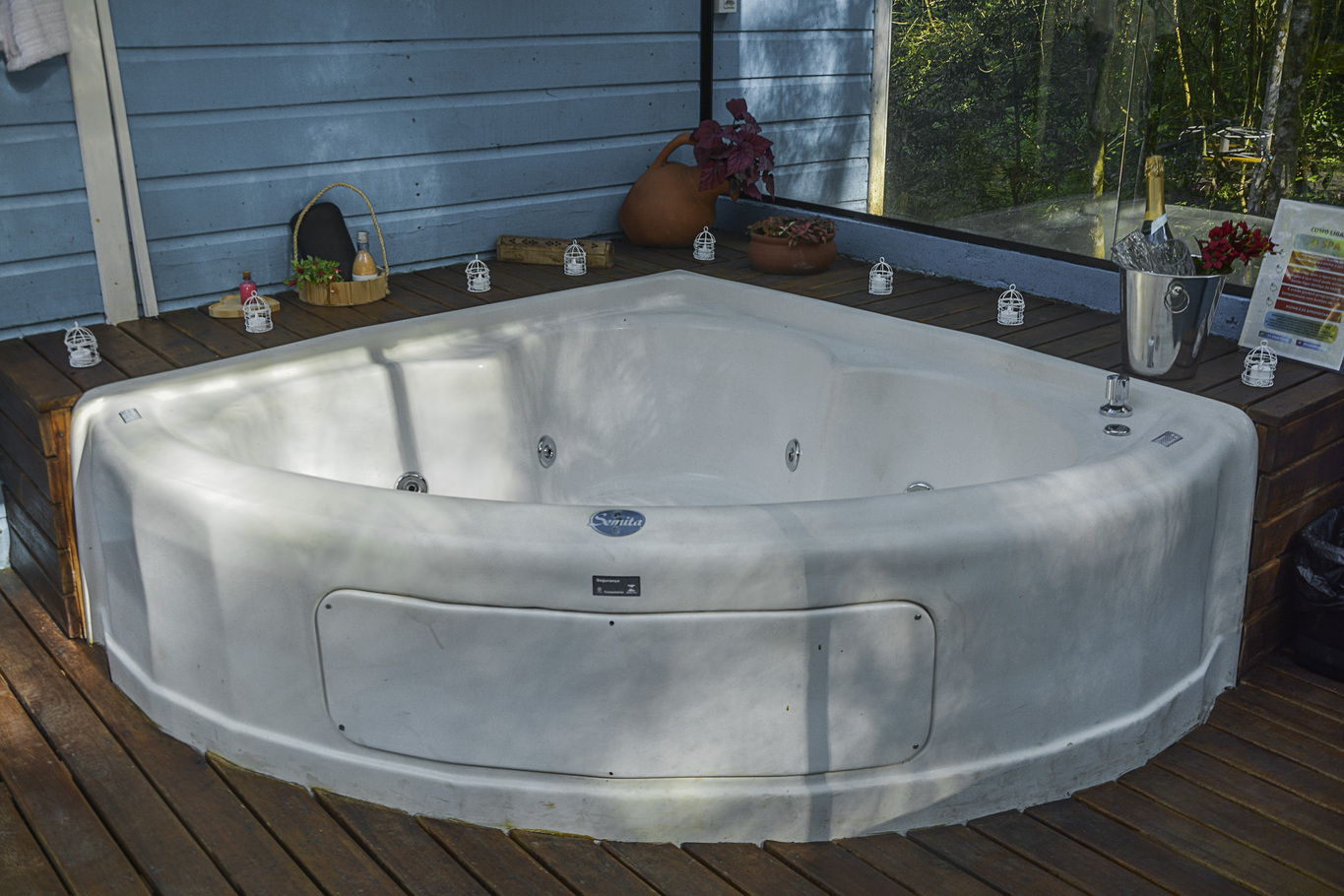- Spa exterior con bañera de hidromasaje para dos personas y un niño