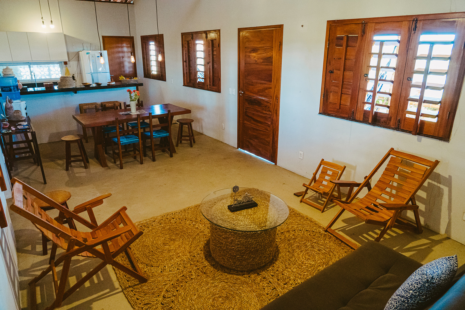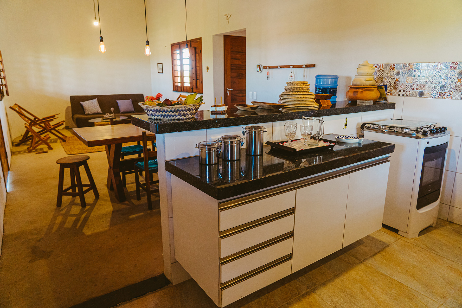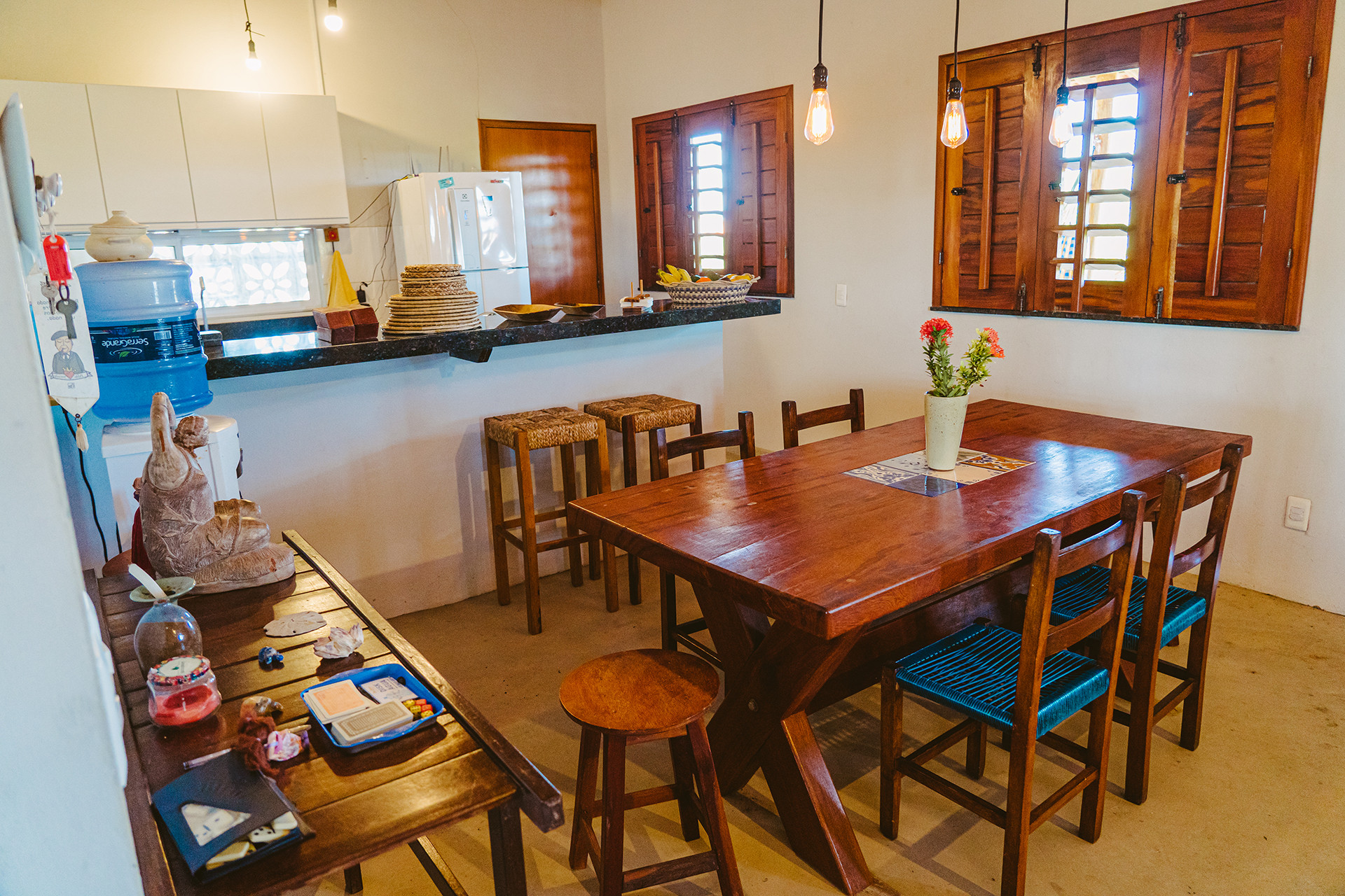 - Mesa de jantar e balcão com banquetas