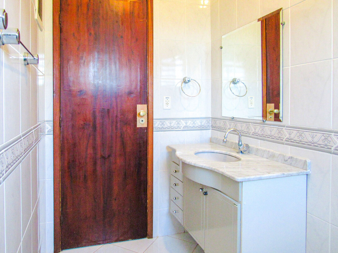 - Os banheiros possuem chuveiro elétrico e box de vidro/acrílico