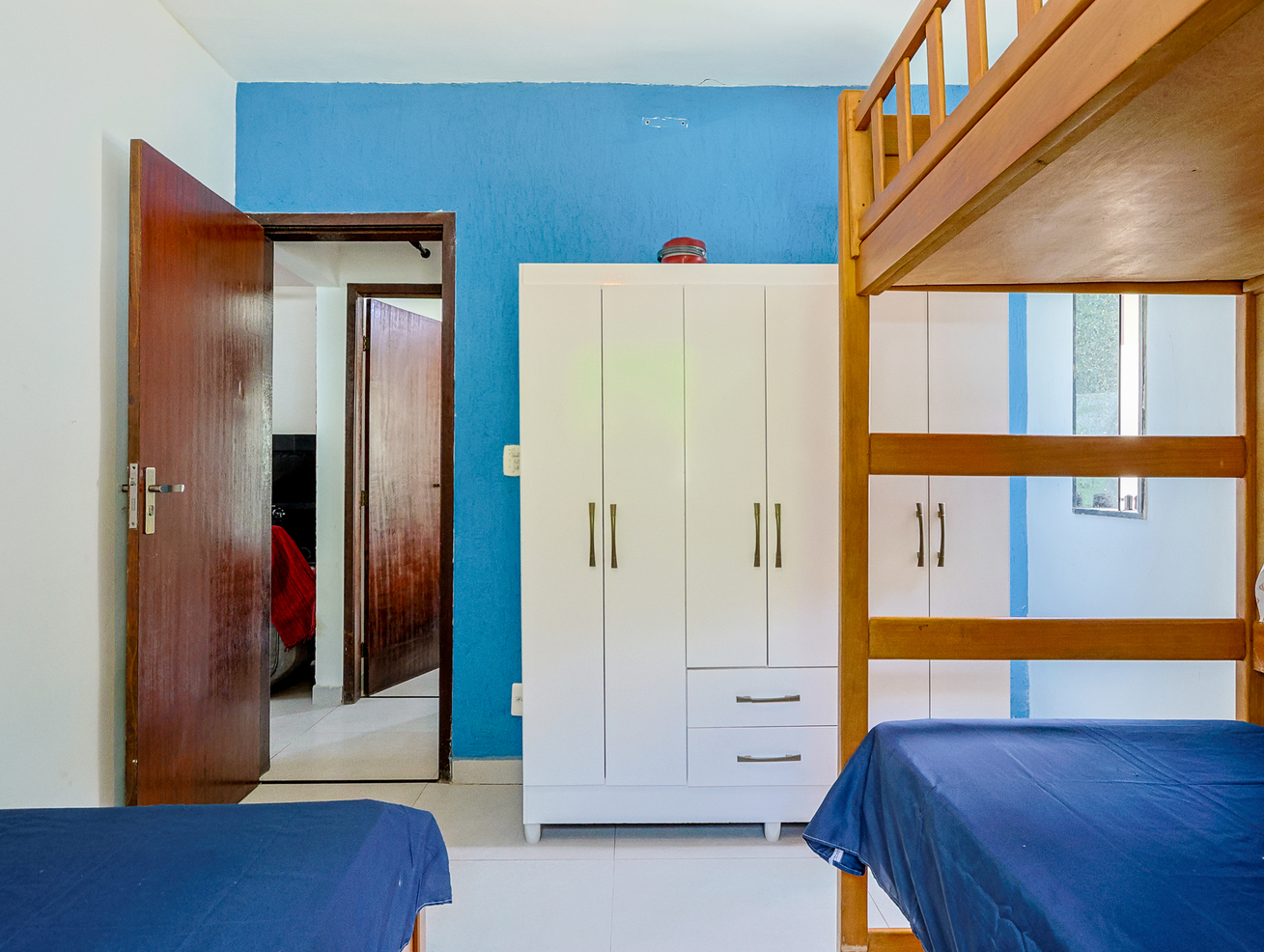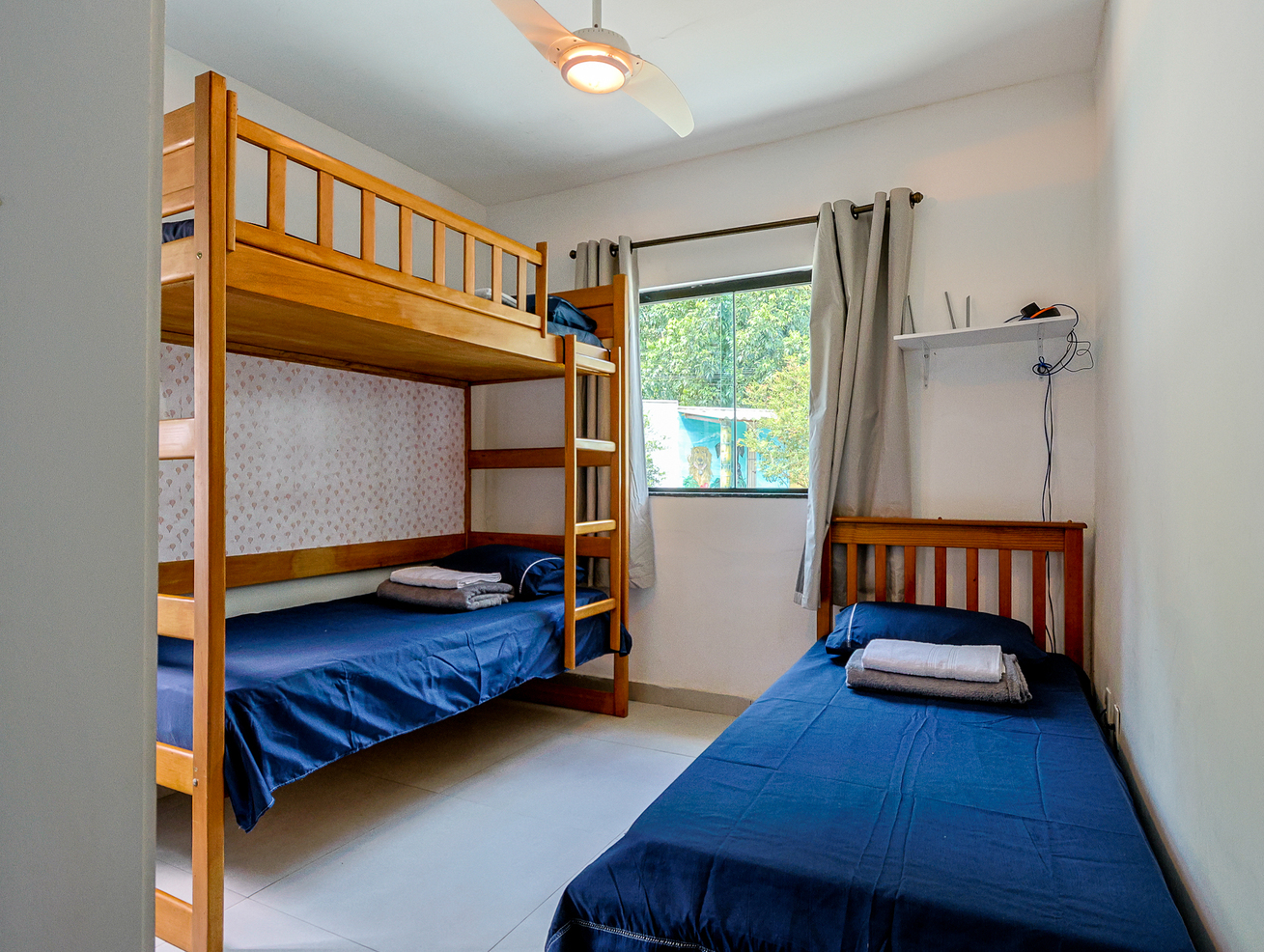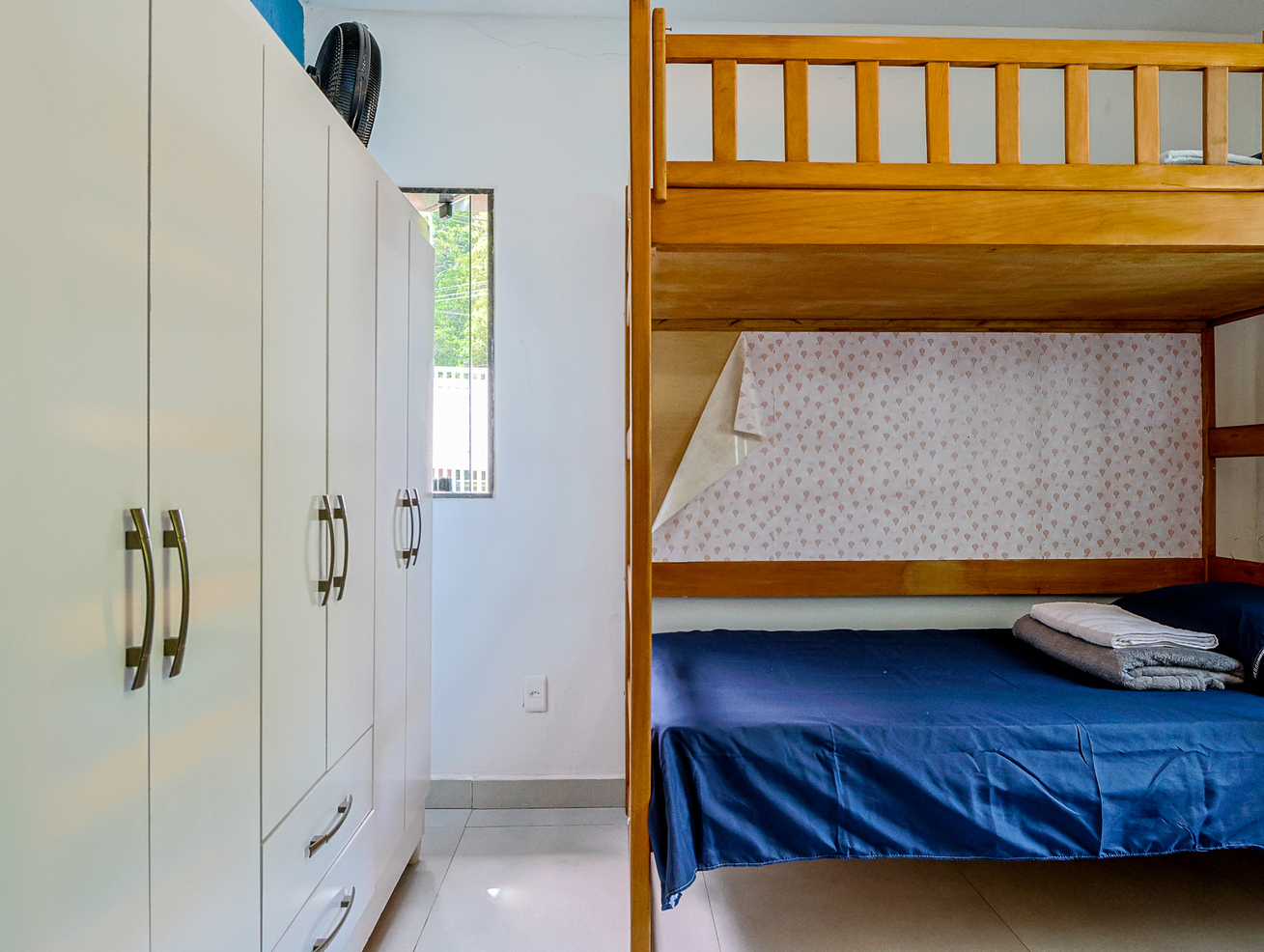 - Habitación 2: 1 litera, 2 camas individuales (siendo 1 auxiliar), ventilador de techo y armario.