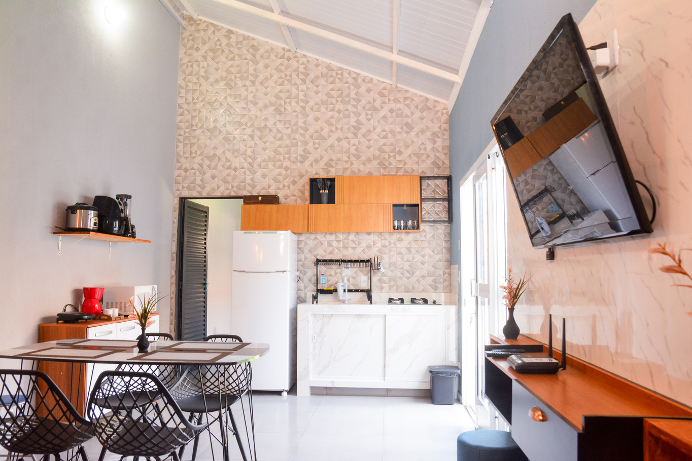 Aproveche días soleados en Olímpia con mucha comodidad en un espacio pensado para recibir bien. Dos habitaciones acogedoras, siendo una suite climatizada, garantizan noches tranquilas. La sala amplia, con TV y sofá-cama, es la invitación para relajarse después de explorar la ciudad. La cocina completa hace que cada comida sea más práctica y el área externa con barbacoa transforma los encuentros en momentos especiales. Dos plazas de garaje e internet hacen todo aún más conveniente.