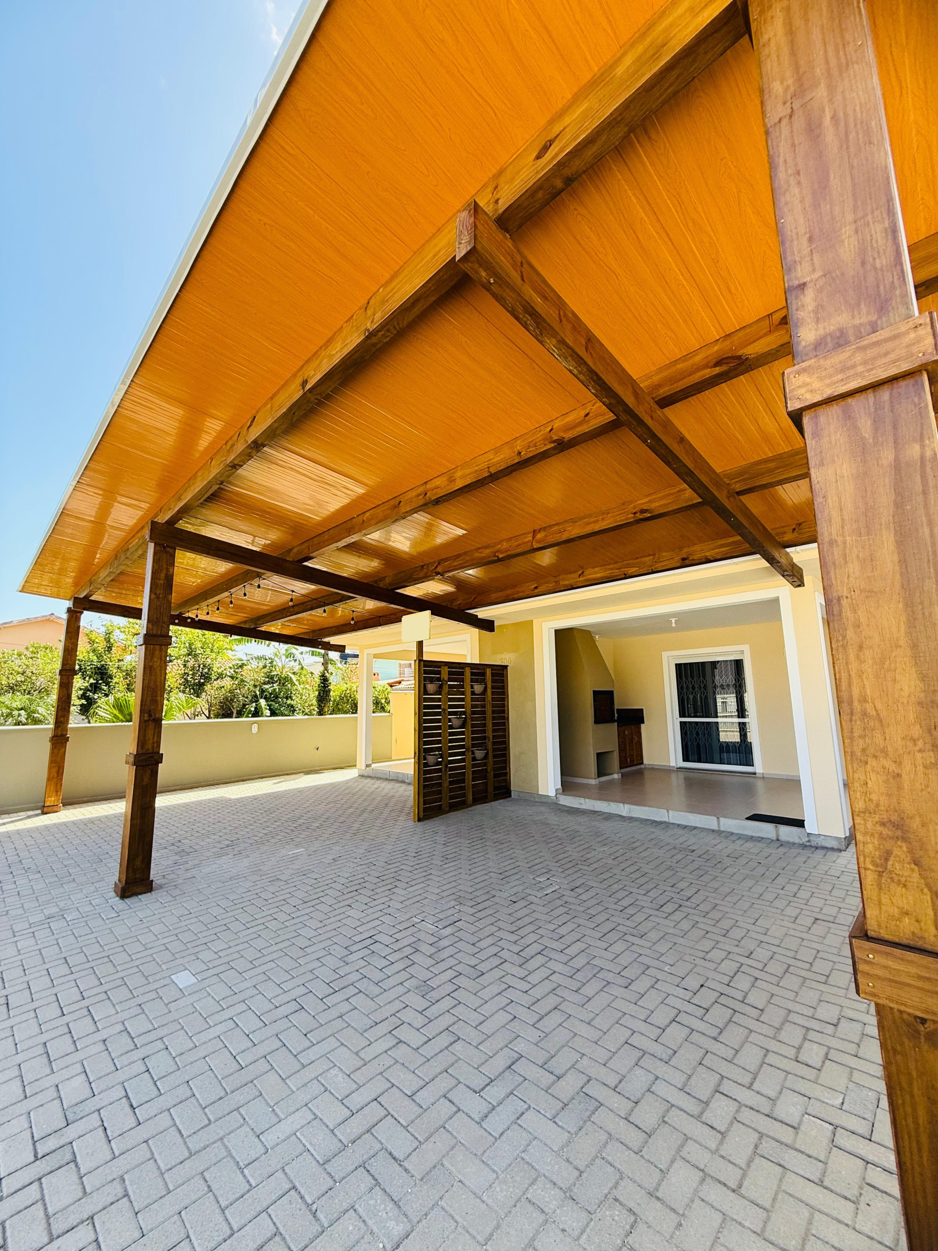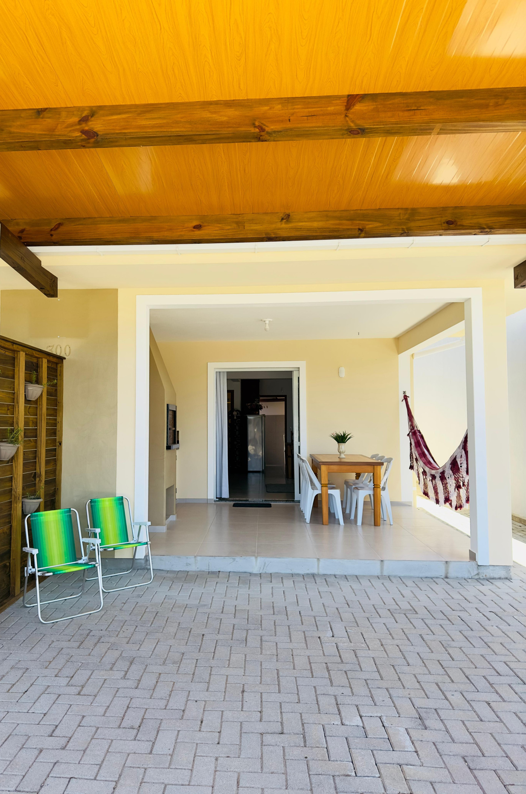 - Pátio fechado com muro e portão, grades pantográficas nas portas e janelas