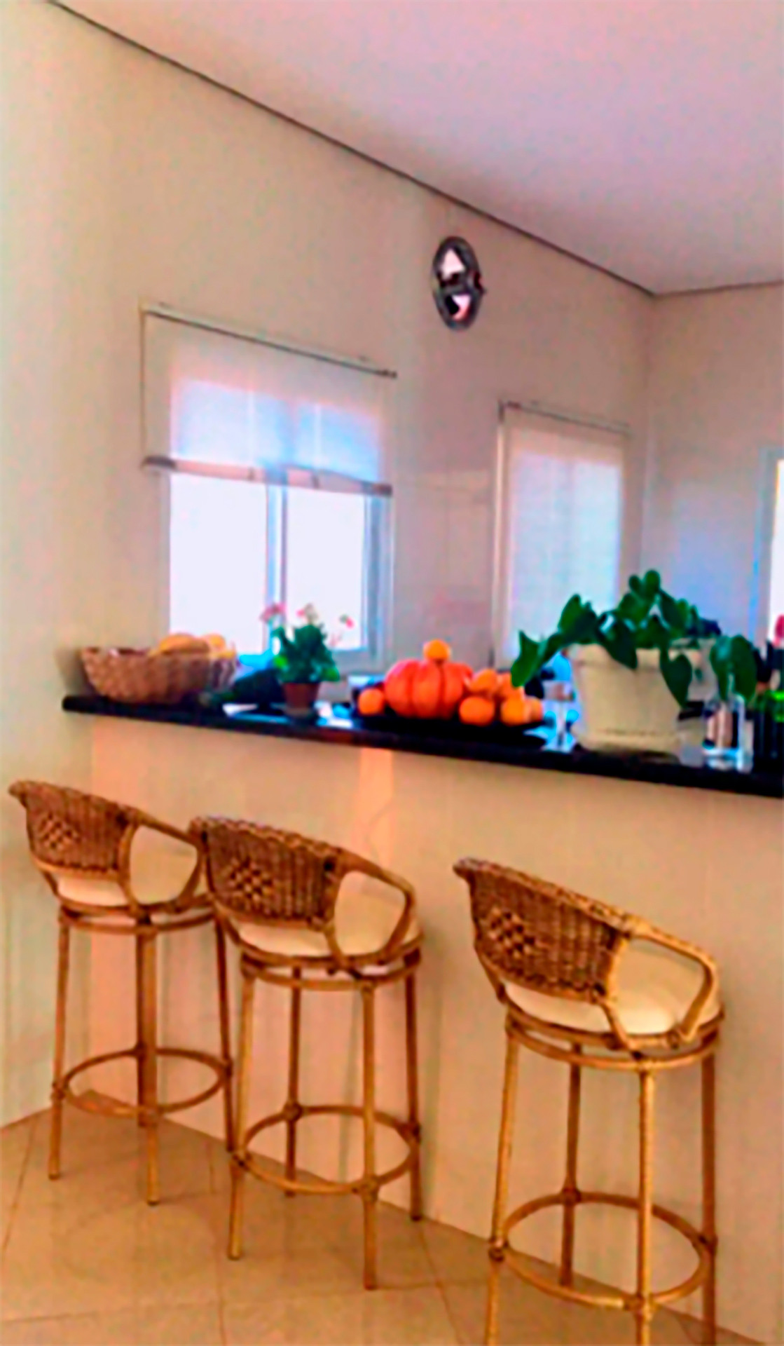 - A cozinha americana está equipada com fogão, exaustor, geladeira, micro-ondas, liquidificador, torradeira, cafeteira elétrica, fritadeira elétrica, panelas, louças e utensílios