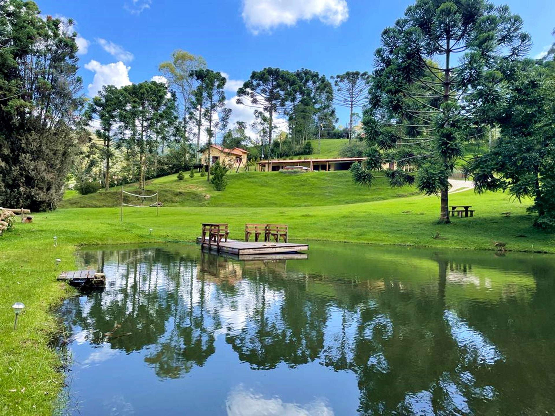 Venha se hospedar em uma incrível casa de campo em Piranguçu/MG a apenas 16,7 km do centro turístico de Campos do Jordão (Vila Capivari), com ampla área de lazer, área gourmet completa, espreguiçadeiras, hidromassagem, quadra esportiva, redes de descanso e terraço coberto, onde você poderá desfrutar das belezas naturais, fazer cavalgadas, explorar trilhas e cachoeiras. O imóvel se divide em 2 chalés e oferece 3 suítes e 1 quarto para sua comodidade. Reserve já sua hospedagem!