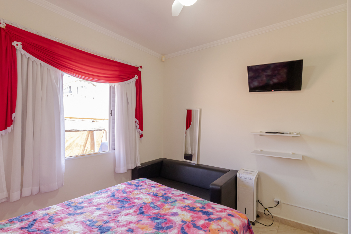 - Habitación 1 (suite): cama matrimonial, armario, Smart TV, ventilador y baño privativo con ducha de vidrio