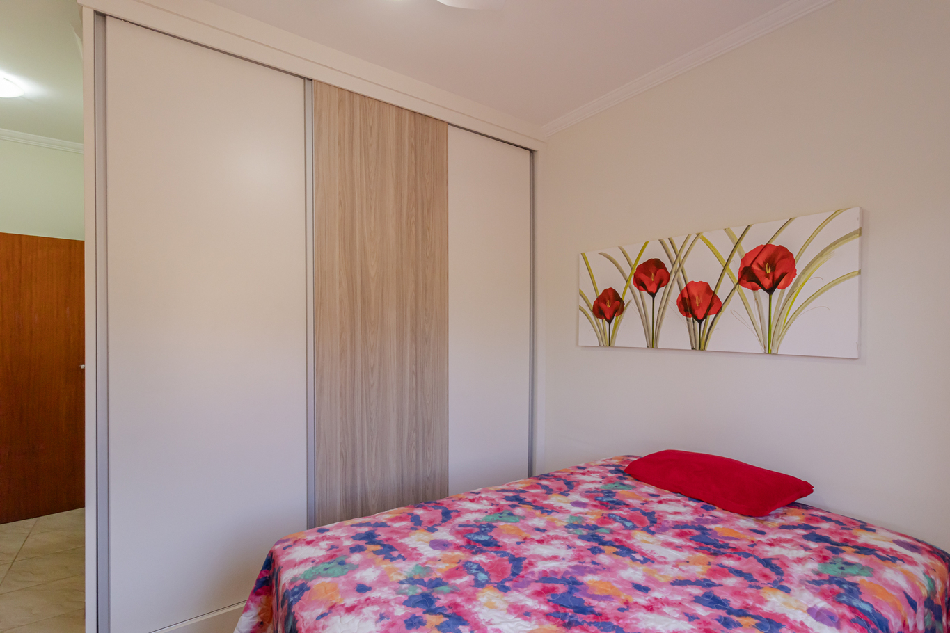 - Habitación 2 (suite): cama matrimonial, cama individual, armario, Smart TV, ventilador y baño privativo con ducha de vidrio