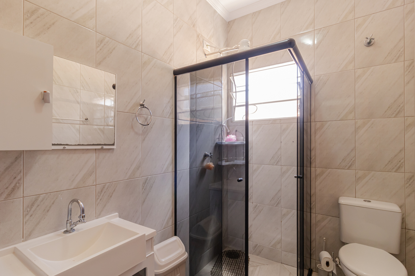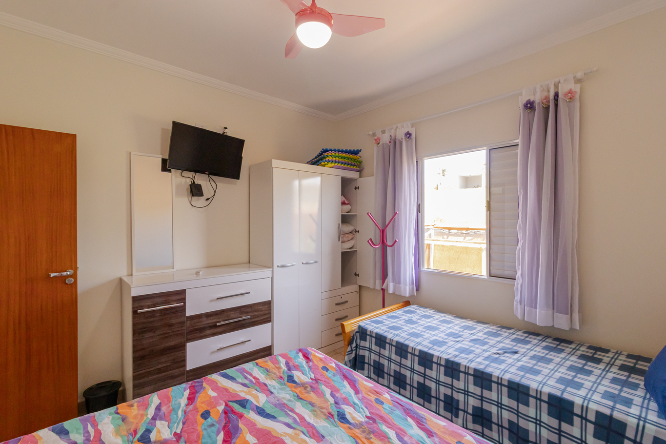 - Habitación 3 (suite): cama matrimonial, cama doble, armario, Smart TV, ventilador y baño privativo con ducha de vidrio