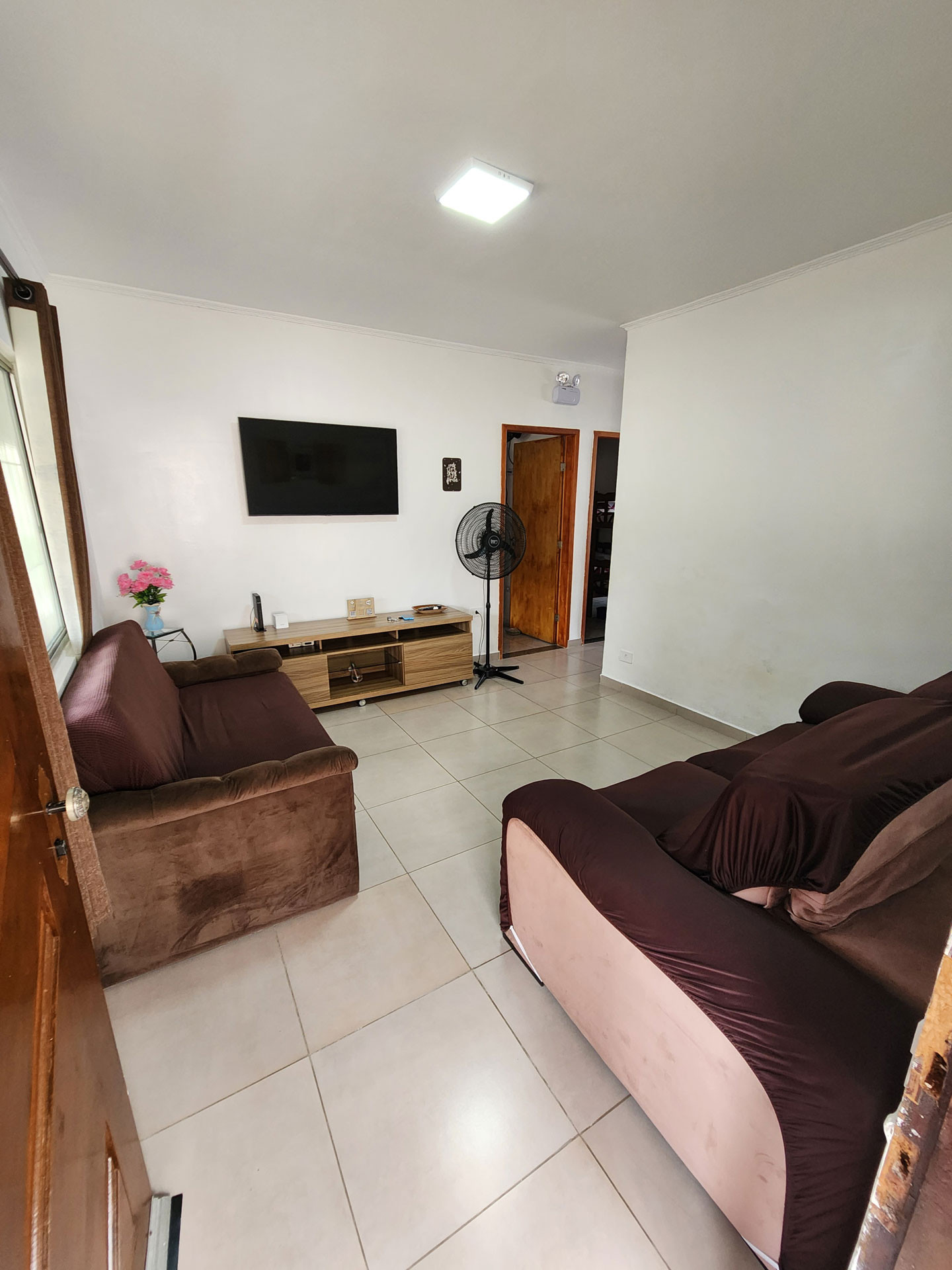 - Sala com sofá-cama, TV a cabo e ventilador de teto