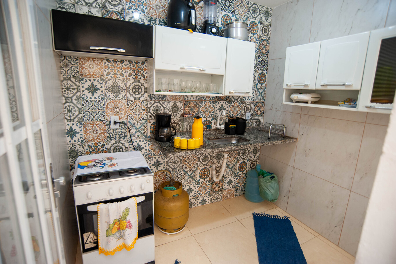 - Cocina equipada con cocina, horno, nevera, cafetera, freidora, tostadora, batidora y diversos utensilios (excepto aceite y sal)