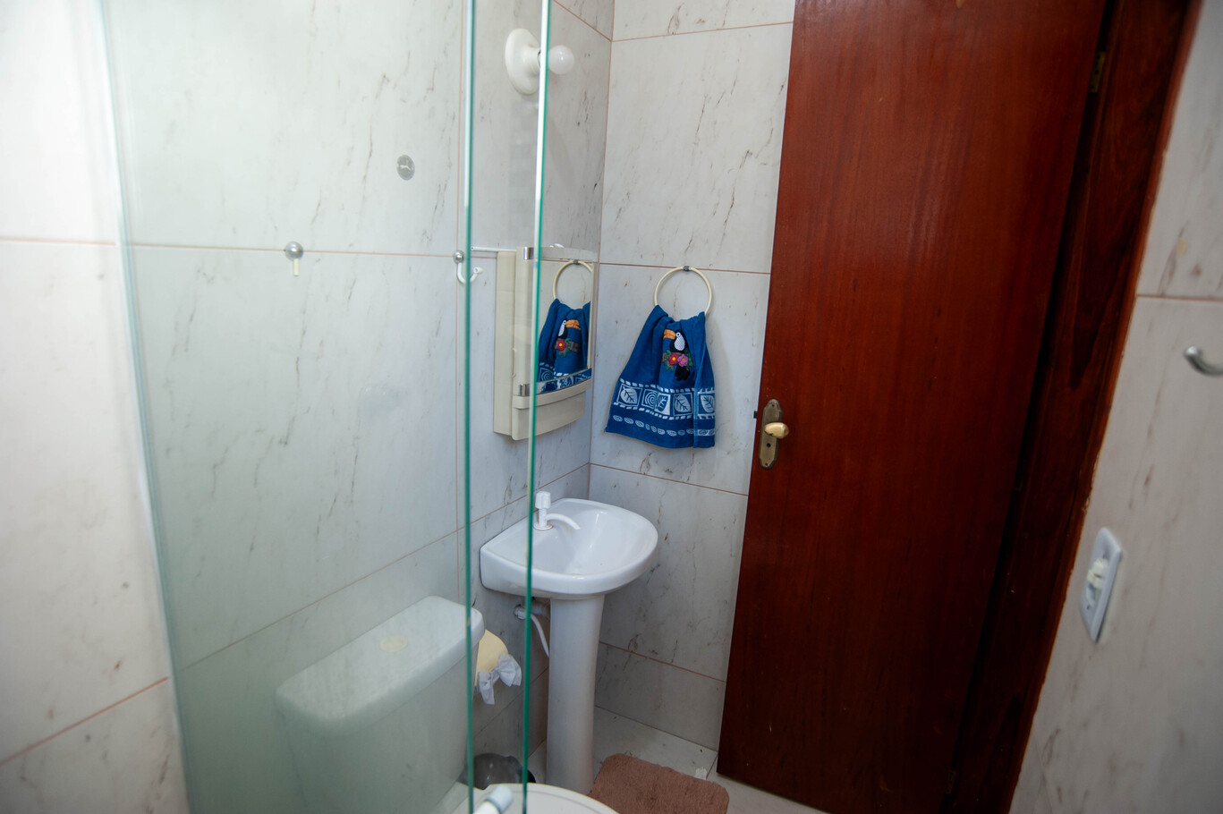 - Baño 1: ducha eléctrica, cabina de ducha de vidrio/acrílico
