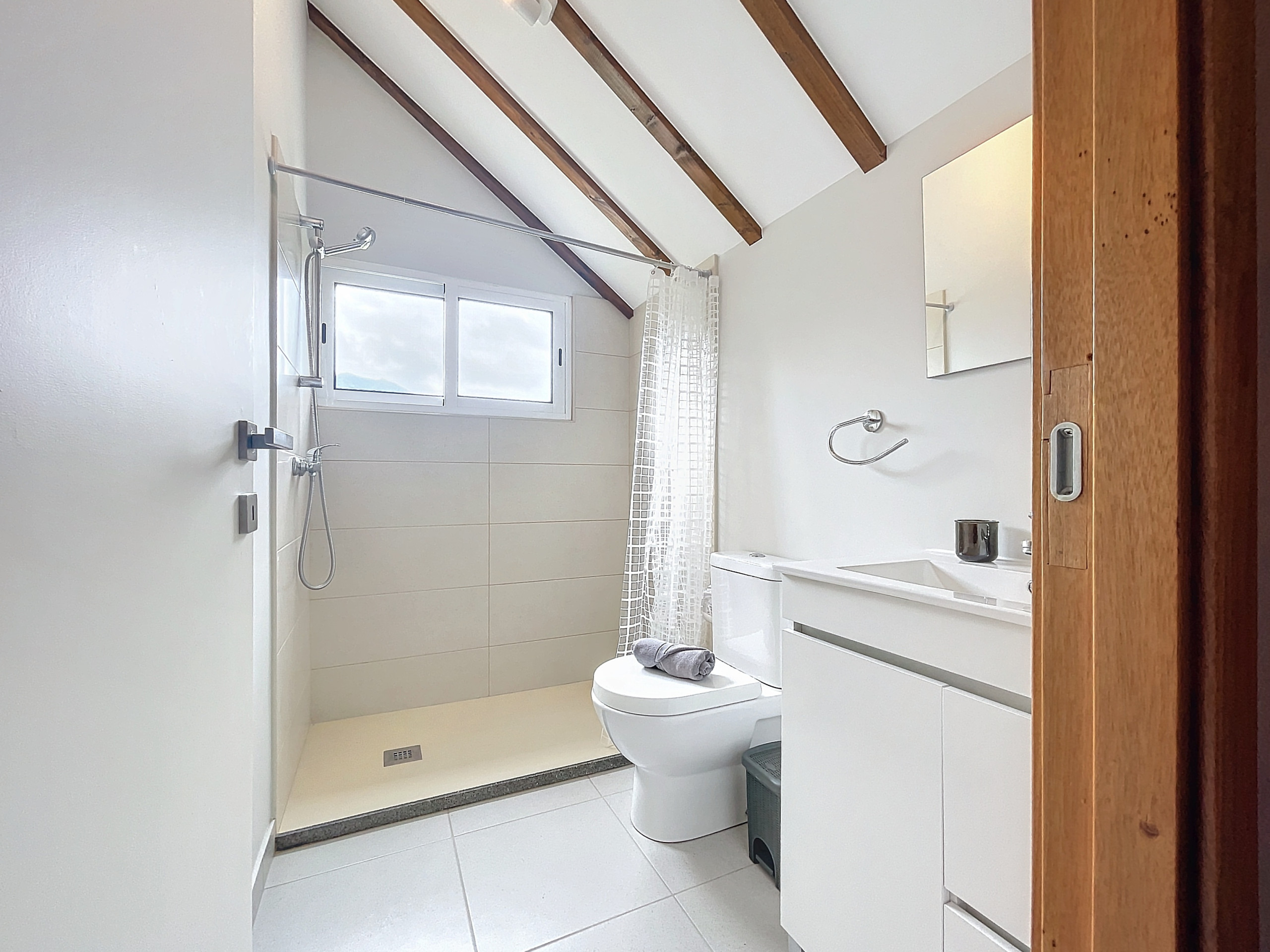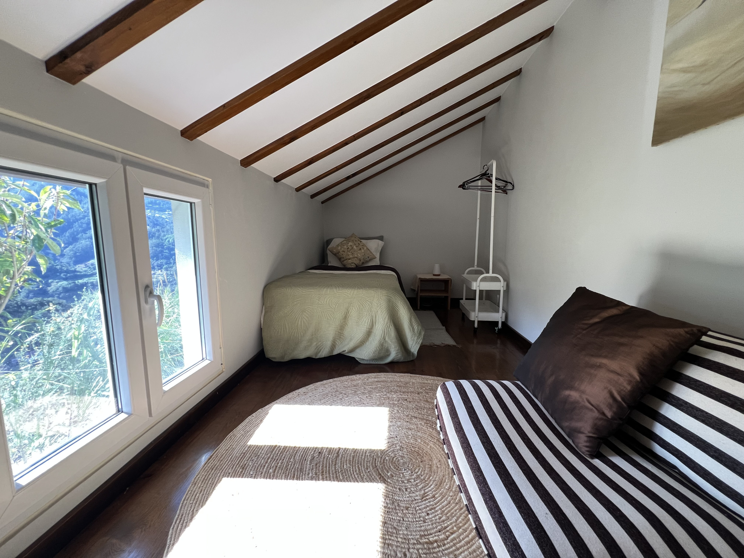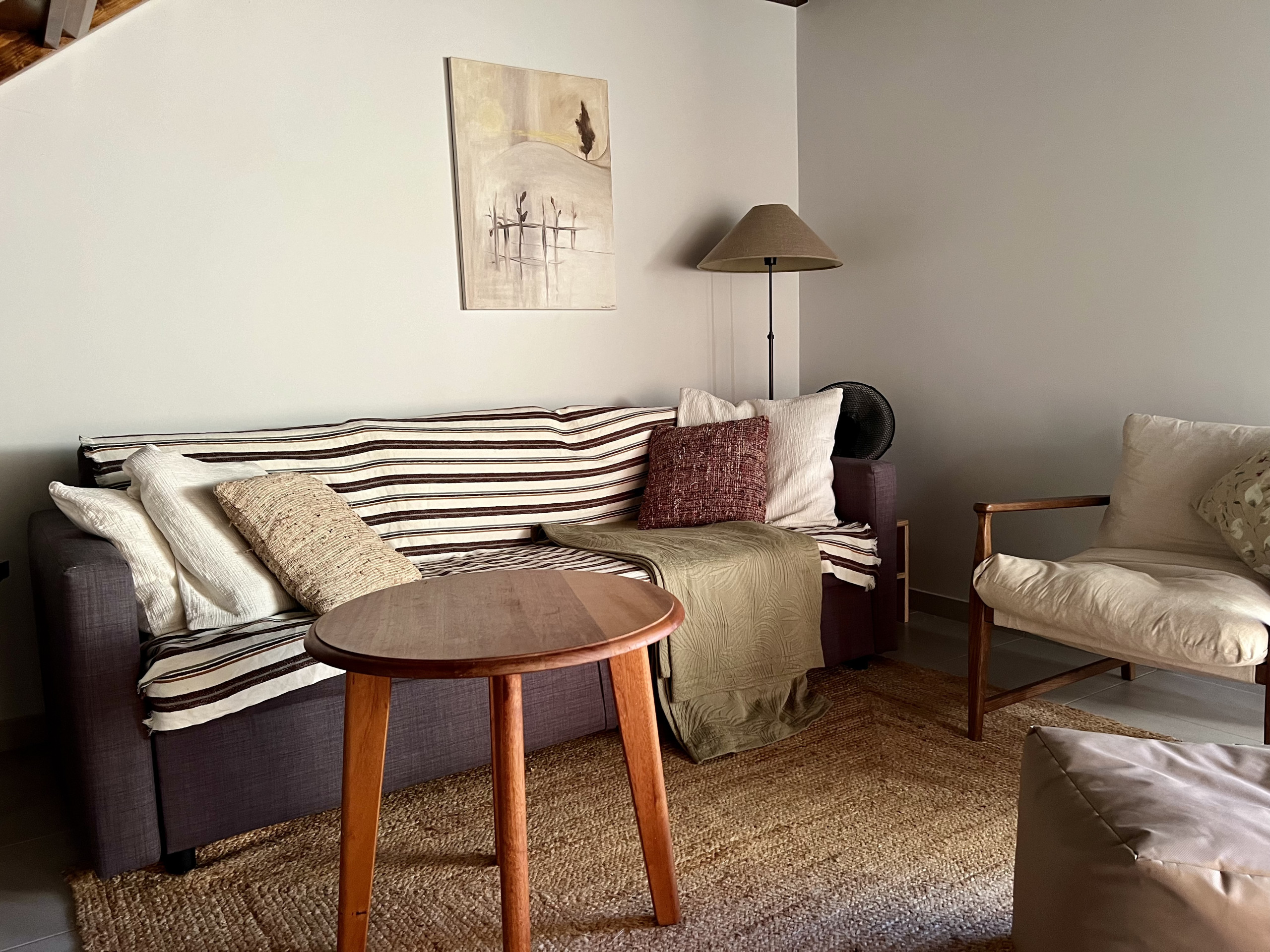 Cómoda para hasta cuatro huéspedes, ZemBica cuenta con un dormitorio principal estilo loft con cama doble, un dormitorio secundario con cama individual y área de estar, además de un sofá cama en la sala de estar. Hay un baño con ducha en cada piso.